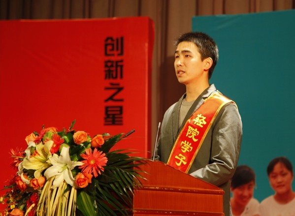 创新之星余洪海同学在演讲