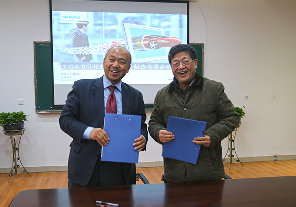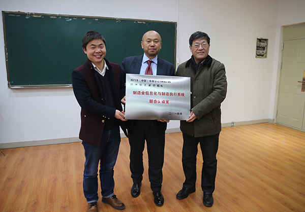 12月2日上午,西门子(中国)有限公司(以下简称“西门子”)和郑州轻工业学院共建协议签署仪式暨“制造业信息化与制造执行系统”联合实验室挂牌仪式在机电工程学院举行。副校长龚毅教授和西门子工业软件公司MES总经理戚锋博士出席了共建协议签署与挂牌仪式。西门子(中国)有限公司行业大客户经理李琳利、设备处和机电工程学院相关负责人以及机电工程学院部分骨干教师、研究生等参加了活动。