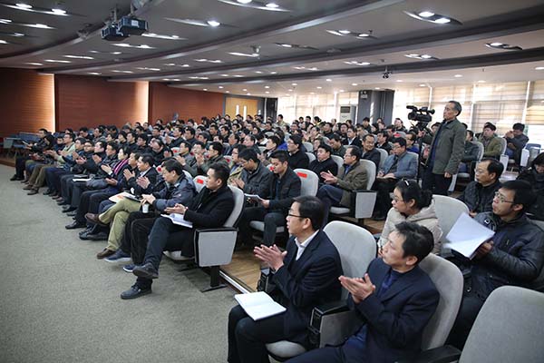 12月19日上午,我校2015年毕业生就业创业工作会议在图书馆学术报告厅召开。校领导剧乂文、石恒真、张胜利、窦效民、龚毅、陈江风、吕彦力、赵继红、安士伟、李世瑛出席会议。各职能部门、院(系)主要负责人和相关人员共220余人参加了会议。会议由副校长陈江风主持。