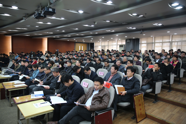 校长石恒真在会上讲话,代表学校党政领导班子对2014年工作做了简要回顾总结,并安排部署了今年的重点工作。他指出,2014年是学校加强顶层设计、奠定未来发展基础的重要一年,是内涵建设、外延拓展、党建思政、管理服务等各项工作都取得重要突破的一年。他从调整结构、优化发展,提升质量、促进发展,科技创新、服务发展,引育人才、支撑发展,改善条件、保障发展,以生为本、巩固发展,关注民生、和谐发展,狠抓党建、引领发展等8个方面回顾总结了2014年的发展成果。