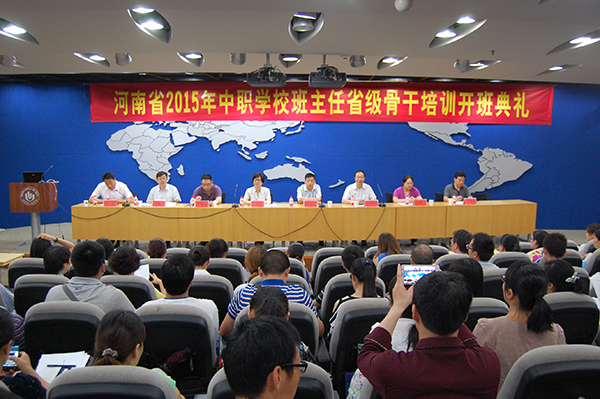 6月27日上午,河南省2015年中职学校班主任省级骨干培训班开班典礼在我校东风校区图书馆学术报告厅隆重举行。王新杰副校长、省教育厅职业教育与成人教育处张家成副处长和牛国栋主任、省成人教育教学研究室培训部任慧婷主任和王玉青副主任出席了开班典礼。全体参训学员、教师代表、相关职能部门负责人、继续教育学院相关工作人员等参加了会议。会议由第三党总支书记戈民主持。