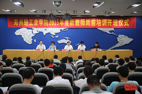上午,郑州轻工业学院2015年度新教师岗前培训班在东风校区图书馆报告厅正式开班。校长赵卫东,副校长毛多斌、王新杰出席开班仪式。人事处、教务处、宣传部、科技处、研究生处、财务处、图书馆、现代教育技术中心负责人以及各院(直属系、部)的负责人参加了开班仪式。