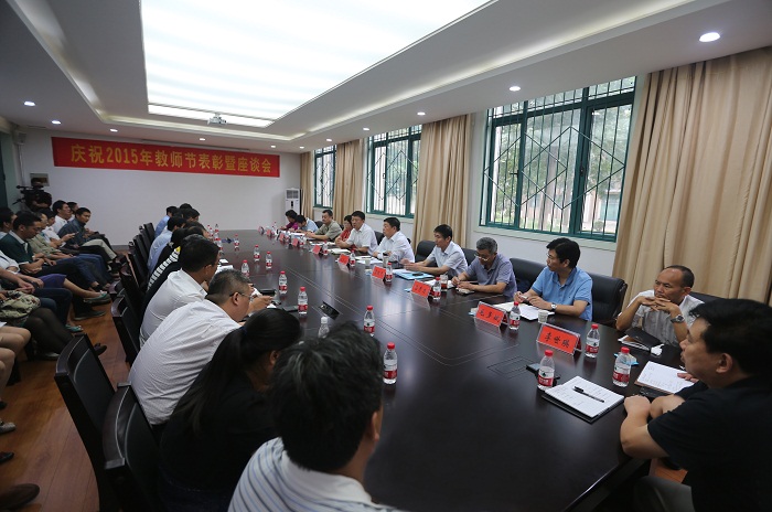 河南省“中原学者”杜淼教授、2013-2015年度校级师德先进个人代表、校级优秀辅导员代表、2015年度从事教育工作满30年教职工代表、2015年度河南省优秀教师代表以及河南省学术技术带头人代表纷纷发言。他们围绕庆祝教师节的主题,结合自身工作实际畅所欲言,与大家进行了交流。有的老师欣喜地回顾了近几年学校事业发生的喜人进展,有的老师总结了自己在轻院成长成熟、奉献收获的感想体会,有的老师介绍了自己在教书育人、师德修养等方面的经验体会,有的老师畅谈了自己作为一名教师的光荣与自豪,有的老师分享了教师节收到毕业学生祝福短信的喜悦和满足。大家纷纷表示,今后会继续在学校党委和行政的正确领导下,爱岗敬业,乐于奉献,静下心来教书,潜下心来育人,努力成为学生成长道路上的良师益友。