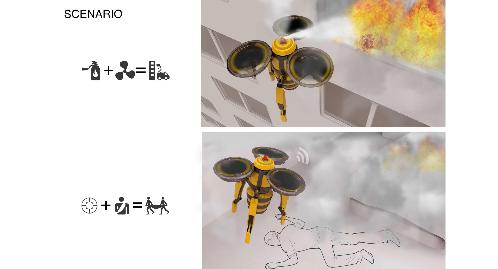 ROBEE是一款专门为消防人员设计的产品,它作为高层建筑消防人员的助手,可以在高层建筑中飞行。由于其特定的探测设备,它可以准确地探测到火灾的确切来源,并且对火情进行应急处理。ROBEE也可以检测任何被困在大火中的生命体征和并且第一时间发送信息到消防控制站,极大增加受困人员获救的几率。