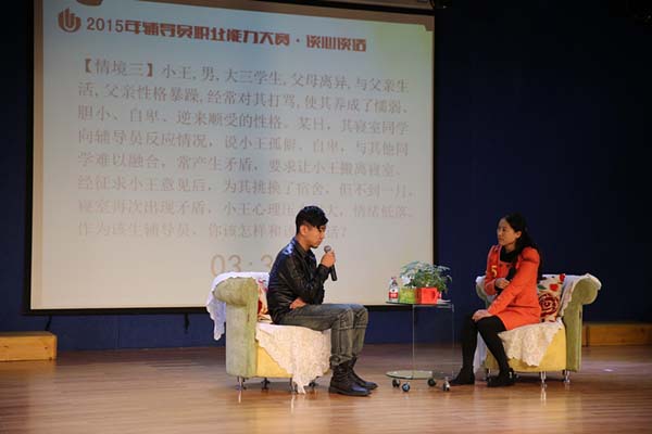 11月27日下午,我校第三届辅导员职业能力大赛决赛在东风校区演讲厅举行。校党委副书记窦效民出席并观看了参赛辅导员的比赛情况。各学院专兼职辅导员和部分学生代表300余人到场观摩。