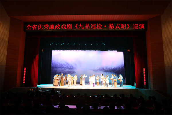 扣人心弦的剧情,精彩不断的表演,生动地将暴式昭“两袖清风朝天去,不带江南一寸锦”的廉吏形象展示在观众眼前,深深感染了在场观众,博得阵阵掌声,激起强烈反响,让在场观众在接受中原传统文化艺术熏陶的同时,接受了一场高水平的廉政教育。