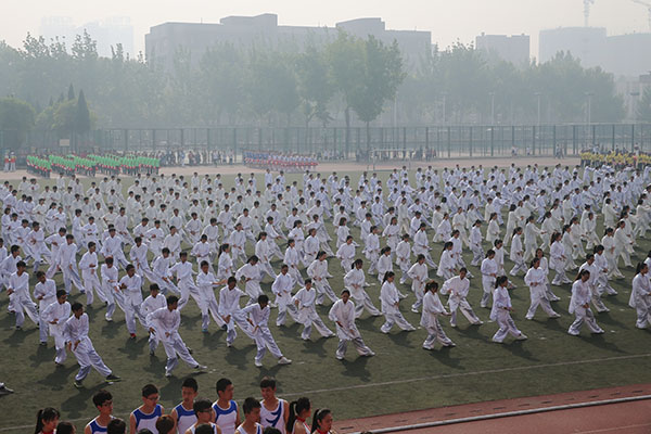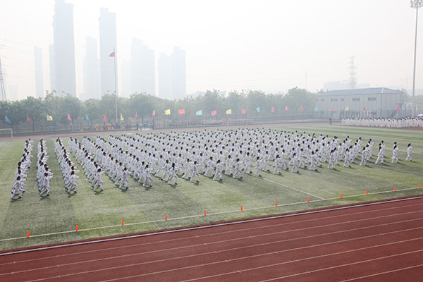 音乐再次响起,学生太极拳表演、教工八段锦表演、学生健身操表演等团体表演粉墨登场,3000余名教职工生参加活动,参与师生的精彩表演赢得了现场观众的热烈掌声和欢呼声,集中展现了我校开展阳光体育活动的成果。整场开幕式振奋人心、催人奋进,为下一步的比赛鼓足了劲,开好了头。