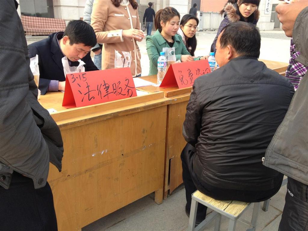 社团活动年度大事记 3.15法律进社区消费者权益宣传活动 1.活动时间:2013年3月15日 2.活动地点:郑州轻工业学院科学校区北门 3.活动参与主体:郑州轻工业学院大学生法律援助中心、上海协力(郑州)律师事务所。 4.活动目的:提供法律咨询,宣传法律常识,维护消费者权益。 5.活动内容:现场为学生以及居民提供法律咨询服务。 6.活动意义:增强法律意识,普及法律常识,弘扬社会正义。 活动大型横幅 众多学生及居民前来咨询专业律师 咨询现场