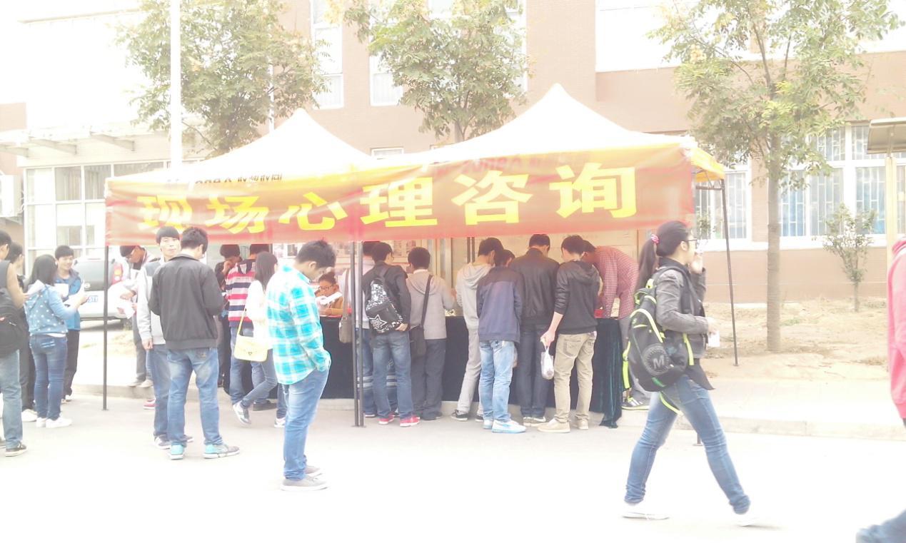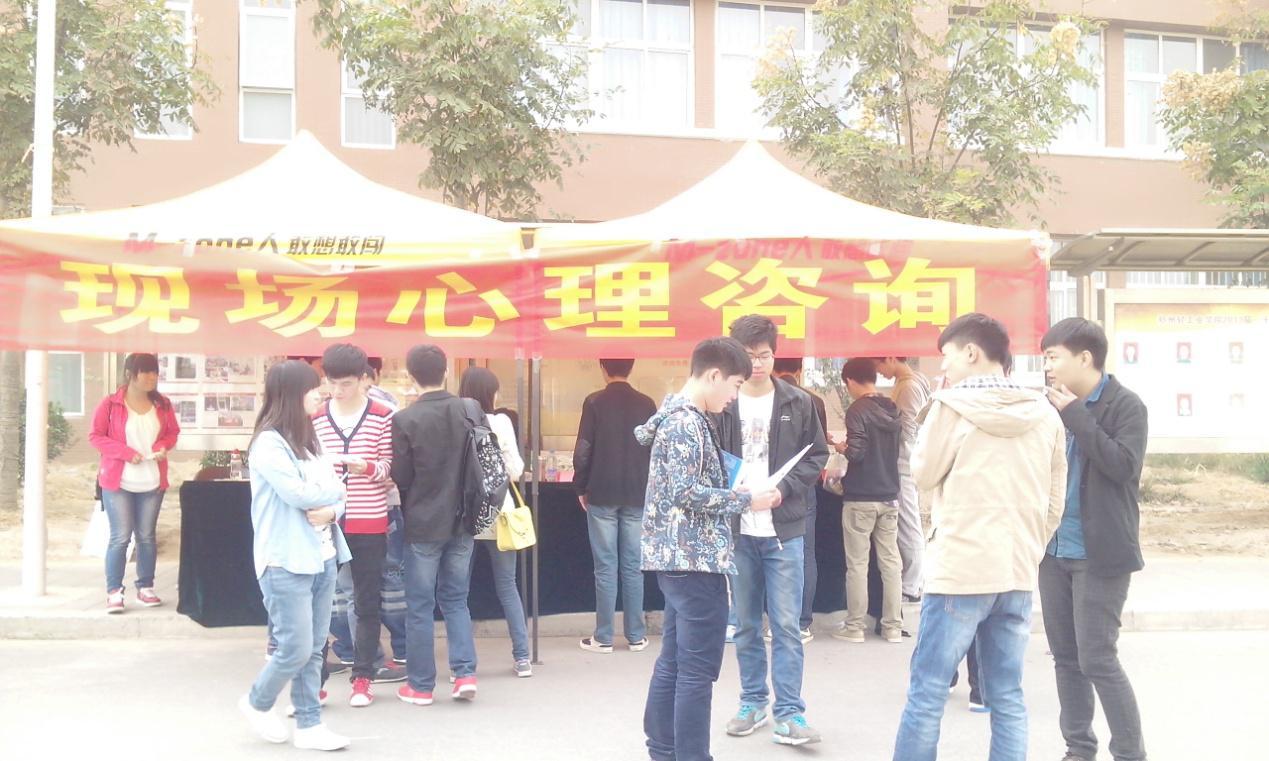 2013年10月23日上午,心理健康教育现场咨询活动在科学校区大学生活动中心楼下隆重举行。全体心协成员在校团委及社联的指导下,号召轻院同学关注活动并参与其中。