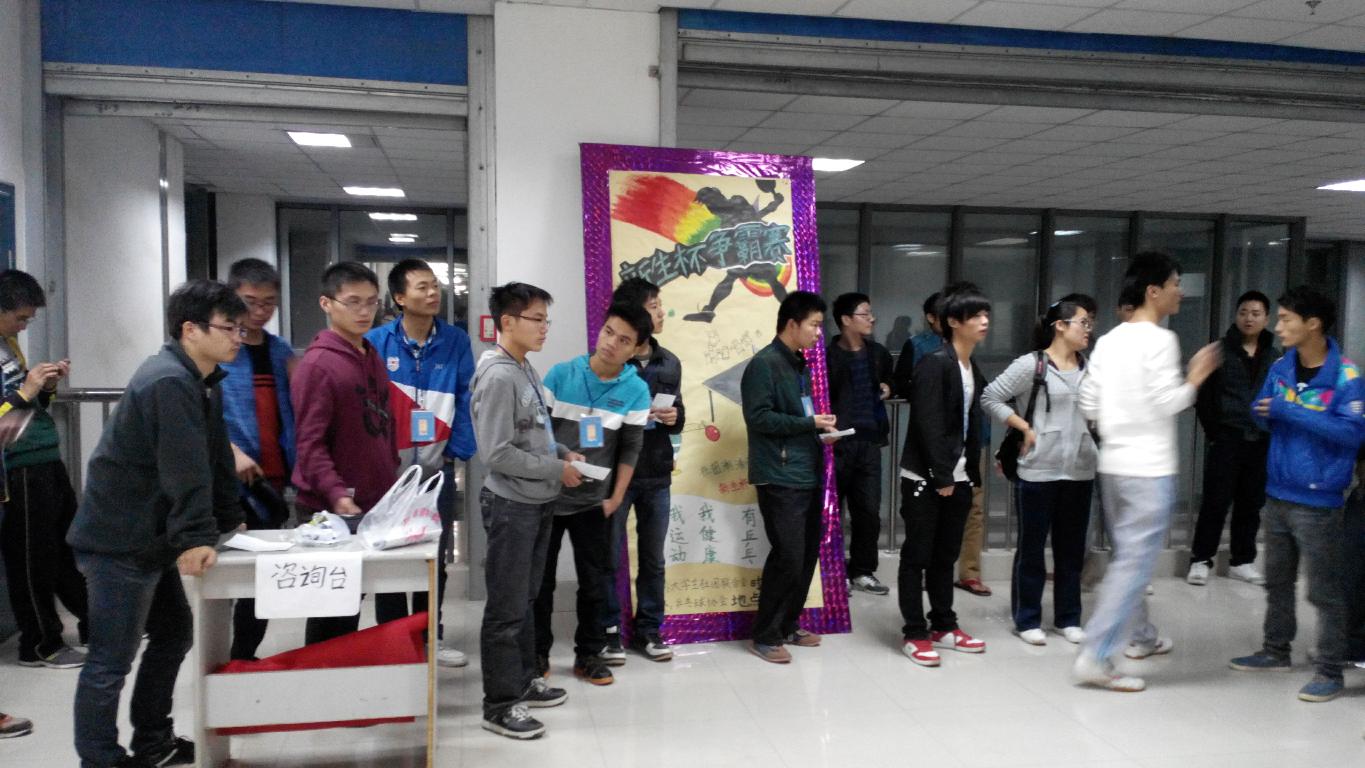 为了丰富同学们的课余生活,培养同学间的团结协作精神,提高社团影响力与竞争力,11月8日晚,乒乓球协会在主教楼东的乒乓球室举办了“新生杯争霸赛”,参赛选手为乒乓球协会全体13级成员。
