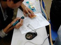此次活动由电子科技协会主席团成员以及全体13届新会员参加。分两批进行,活动前期,由团支部为会员分发电路图,秘书处分发电子元器件,随后电协技术部负责人现场为13级会员详细的讲解了专业电子知识以及制作技巧,会员制作过程中由12级成员为参与电子制作的会员进行了现场指导。活动现场,13届成员认真专心的听取学长的建议及方法。最后,电协“趣味电子制作”取得了圆满的成功。