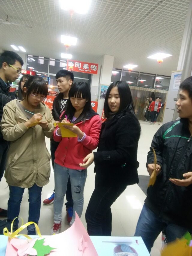 本次活动开始,首先采取抽签进行人员分组,成员随机分成四组,每组由协会各个部长担任组长。活动分四个环节进行。首先每个组进行现场计时制作。从各组组员挑选各种彩纸,到制作结束。制作过程中,各组成员积极合作,活动有条不紊的进行。制作结束,各组成员将自己制作好的作品通过展示给参观者,并对自己的作品进行寓意讲解。再由参观者与协会评委作为作品进行现场打分,通过得分高低评出一等奖、二等奖等。接着,协会对外会长马静宣布得分结果,会长王丽娜为获奖组颁发奖品并合影留念。活动最后将制作成果在清苑餐厅前面展示。