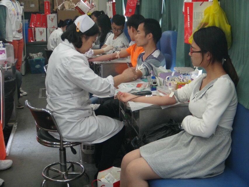 为向前来献血的师生们提供最为优质的服务,志愿者们一早便来到了现场,为本次活动做最后的准备工作。活动前期,通过微博、微信、QQ、宣传板等线上线下宣传方式,使得活动未开始之前便获得了较高的关注度,活动当天,很多同学都早早的来到现场耐心的等待献血活动的开始。上午十时,活动正式开始。献血采集登记处很快的就排起了长龙,热闹的活动现场也引来了众多同学驻足围观,在了解本活动形式及意义后都积极参与其中,纷纷献出属于自己的一份爱心。这股无偿献血的爱心热潮无疑感动了在场的每一个人。献血活动如火如荼的进行着,志愿者们恪尽职守,为同学们耐心的讲解献血的相关事宜及注意事项,在医护人员和志愿者们的引导和帮助下,活动有条不紊的进行着,化验、等待、抽血、休息。有些同学以前献过血,对献血流程十分熟悉,一来到现场就投身到献血热潮中;而有些同学献血热情高涨,却因化验结果不符合献血条件失望而归,不过他们纷纷表示仍旧会积极关注献血活动。这股献血热潮也影响了可爱的志愿者们,在完成本职工作后也都积极的加入献血队伍。休息区内,志愿者们为献过血的同学们端来一杯杯热腾腾的糖水,仔细的为同学们讲解献血后的注意事项,并为其发放献血证和相关礼品。献血活动持续整整六个小时,同学们都积极参与其中,认真配合,志愿者们也秉承着不怕苦、不怕累的精神,始终以积极的态度坚守在自己的工作岗位。