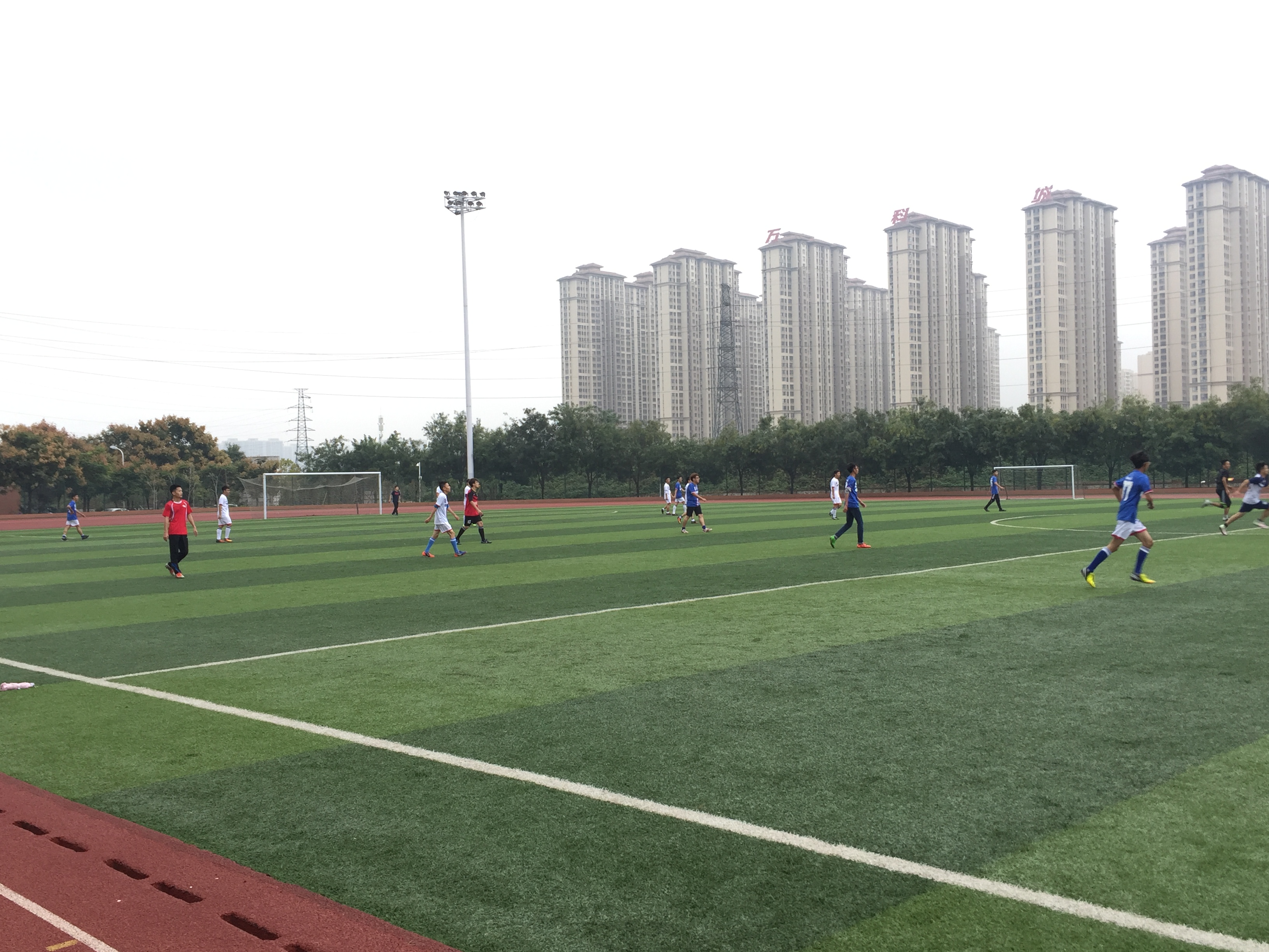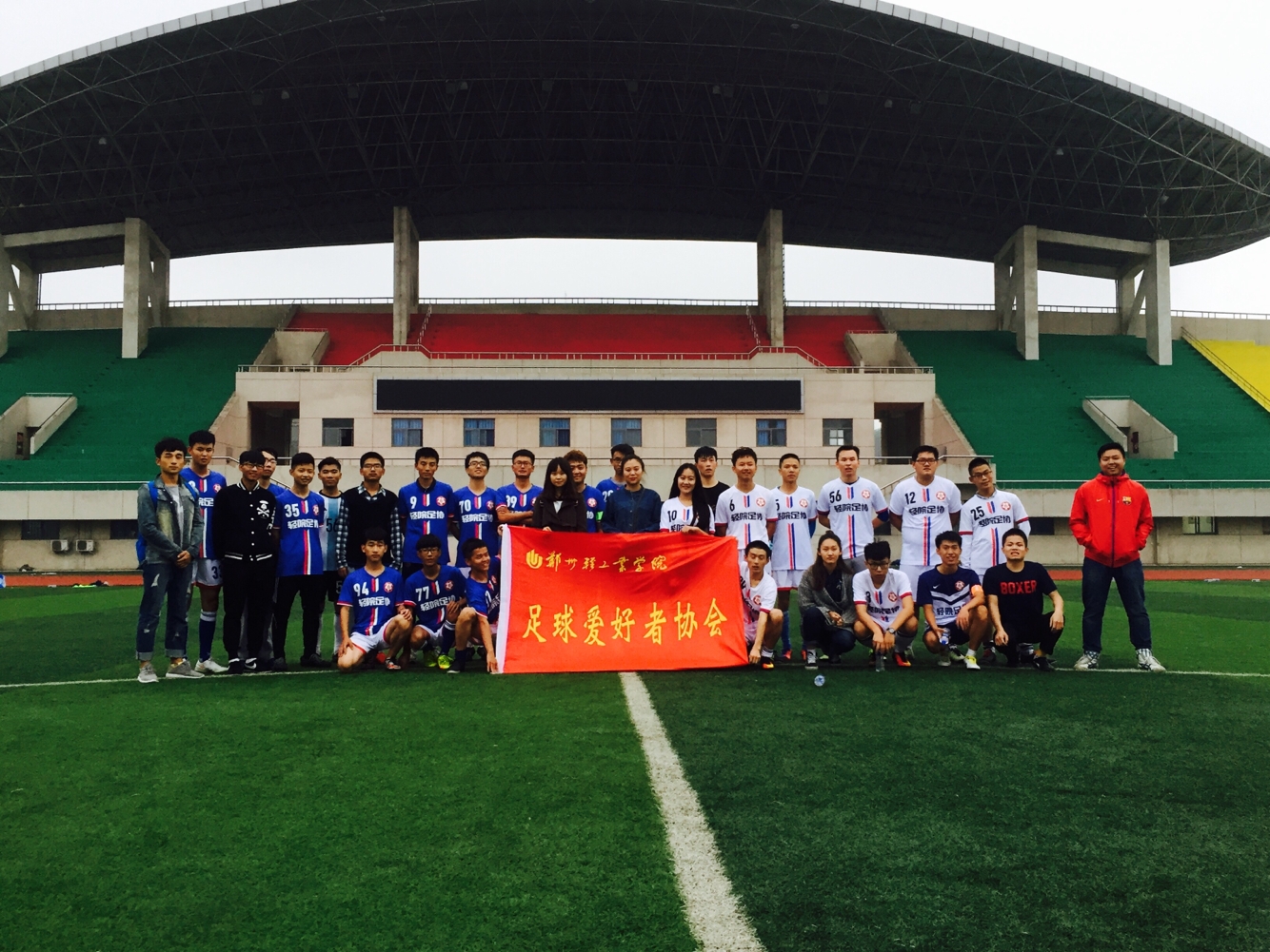 10月15日,由校团委主办,足球爱好者协会承办的新老区交流赛活动在科学校区足球场圆满落幕。本次活动主要由2016级新会员参加,大二大三会员负责后勤工作、现场指及战术讲解。此次活动主要由科学校区与东风校区的会员们共同参加,东风校区共派11名代表参赛,科学校区共计28名代表参赛。比赛前有零星小雨,到达正赛时间基本雨停,球员们可以在阴凉惬意的的环境中踢球也是本次活动时间选取的一个成功之处。但因操场积水原因,场地湿滑,也为比赛造成了一点点的小困扰。本次比赛采取正赛两节每节45分钟,副赛两节每节30分钟的比赛时长,让更多的足球爱好者们参与其中,体验十一人制足球的乐趣与享受。最终在90分钟正赛时间内科学校区队以5:2主场战胜东风校区队,副赛两节会员们随意发挥,享受乐趣,进球数未统计。