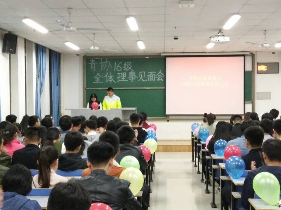 晚上7点,协会的成员纷纷前往二教楼708室。在安排好人员入场的准备工作后,由主持人简要介绍参加大会的领导及各理事成员,并且本着青年志愿者协会奉献、友爱、互助、进步的宗旨热情的欢迎了16级新成员们的加入。大会第一项由十个部门的副部长介绍部门的职责,成员以及往年工作成果内容的演示和对未来的期望,重点扫除16级对部门职责范围的盲区。接下来是第二项游戏互动环节。全体16级成员主动积极的参与游戏,15级的成员负责活跃游戏气氛,大会整个现场处处洋溢着和谐与温馨。第三项由青协第十六届书记李爽发表感言,讲述了他对16级成员的殷切希望和对未来工作的建议。并深刻阐述了作为一名志愿者对当代大学生的意义,激励每位成员都做好自己的本职工作。她指出青年志愿者协会需要协会全体成员的共同努力,希望大家珍惜在协会的美好时光的同时,也要和同学们分享自己在青协感受与经历。最后,主持人宣布本次全体大会圆满结束。
