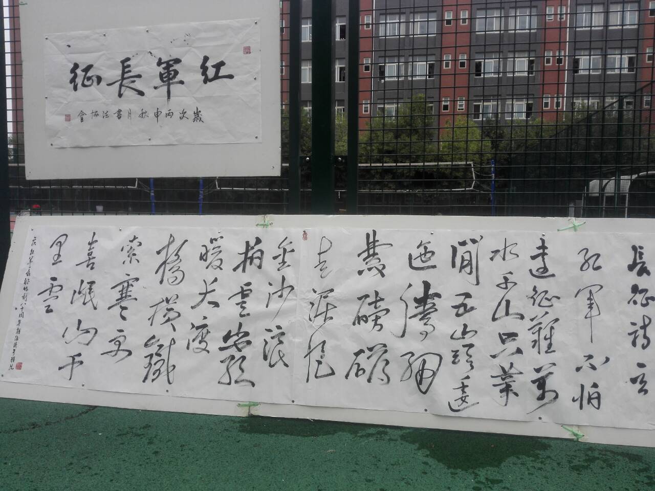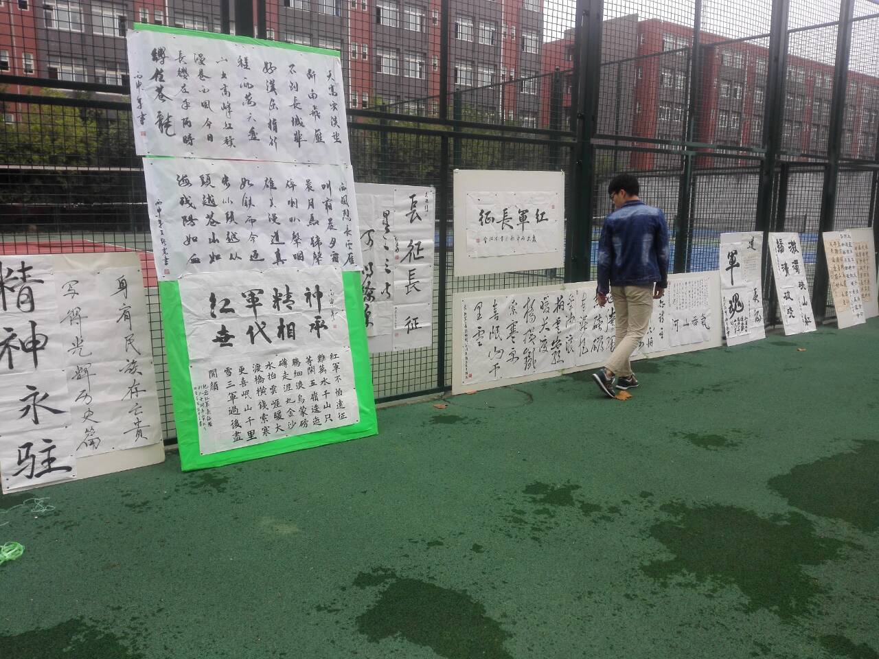 活动当天上午九点,在摄影协会会长张晓中的带领下把活动所需物品搬至活动中心门前并布置好活动所需的帐篷、桌椅、书画作品。在布置书画和摄影作品的时候吸引了很多学生前来观看,在场的讲解人不断向参观者讲解这些作品创作的时间和意义。本次展出的作品主题鲜明,表现形式多样,或雄强刚健,或凝重厚实,或灵动俊逸,或恣性自然,引领观众追寻长征历史,感受摄影和书法作品多元之美及对伟大长征的敬仰之情,通过这些作品不断推崇红军不畏险阻、坚韧不拔的精神。活动现场还准备了笔墨供观展者即兴书写、绘画,吸引了很多师生前来参加,现场活动氛围达到了高潮。下午4点本次书法摄影展正式结束,由张晓中做活动总结。