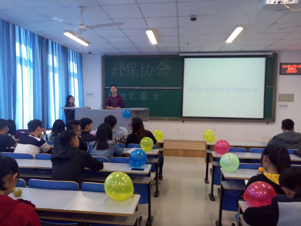 10月13日中午,由校团委主办、环保协会承办的环保协会新生见面会活动在科学校区二教楼710举行。出席活动的有社联陈思聪、邓雯雯,环保协会14级会长牛得意、书记张欢、副会长刘明明、组织部部长孙海明、宣传部部长胡珊珊、外联部部长刘港姐,前来的嘉宾有武术协会副书记刘宇彤,花艺协会书记宋玉婷,演讲与口才协会书记赵仕杰,读书协会会长赵海涛,以及前来参加活动的16级的环保协会新成员们,主持人是环保协会15级副会长高玉聪。本次新生见面会的主旨在于加强成员对环保的重视,增进成员与环保协会之间的关系。