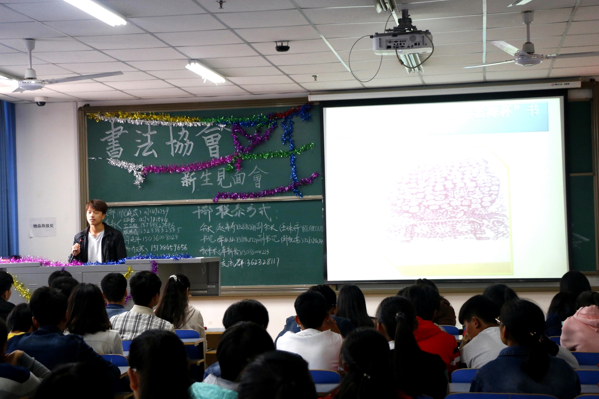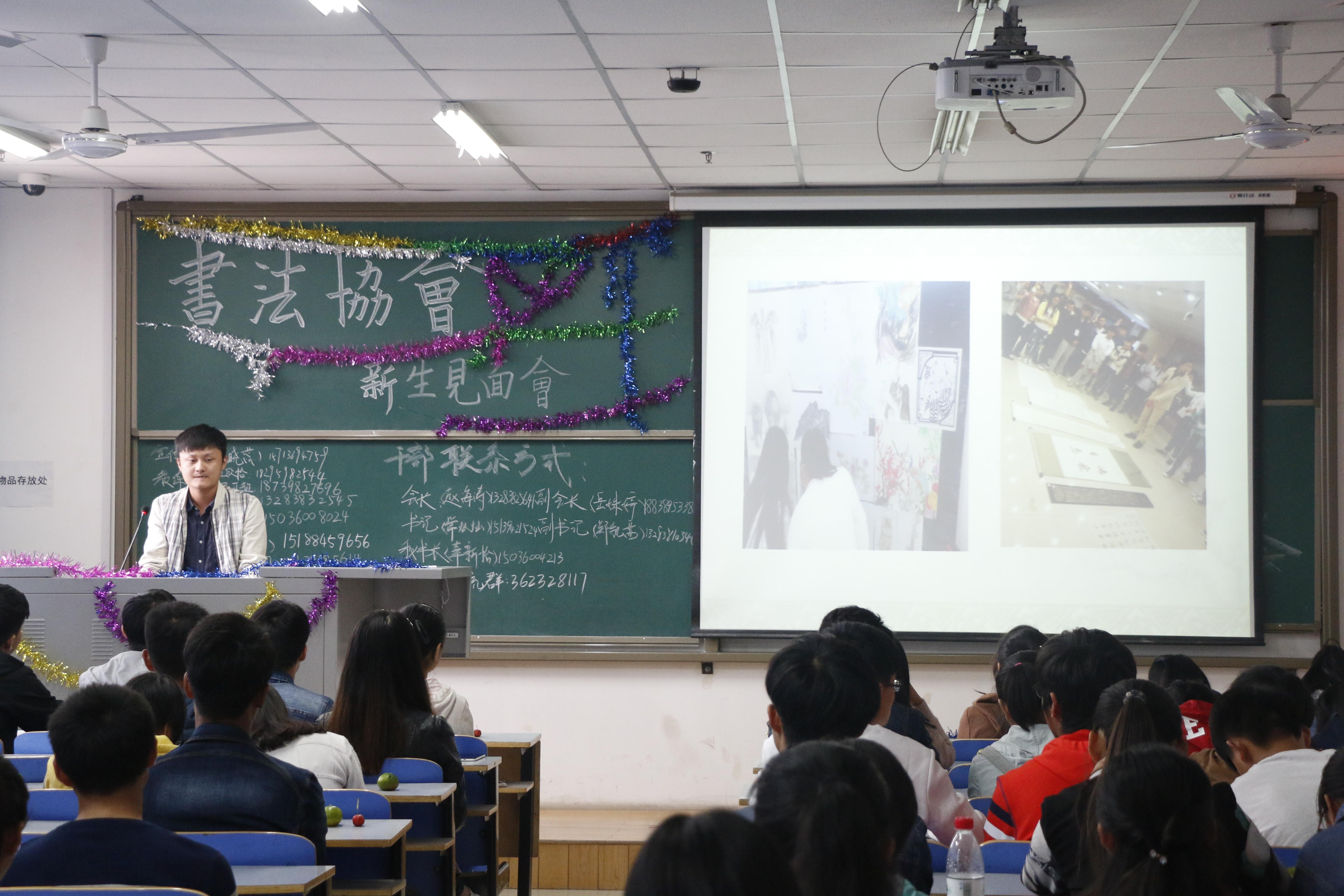 10月14日,由校团委主办、书法协会承办的郑州轻工业学院书法协会新生见面会于科学校区二教楼710教室隆重举行,会长赵海涛以及书法协会各位理事出席本次见面会。