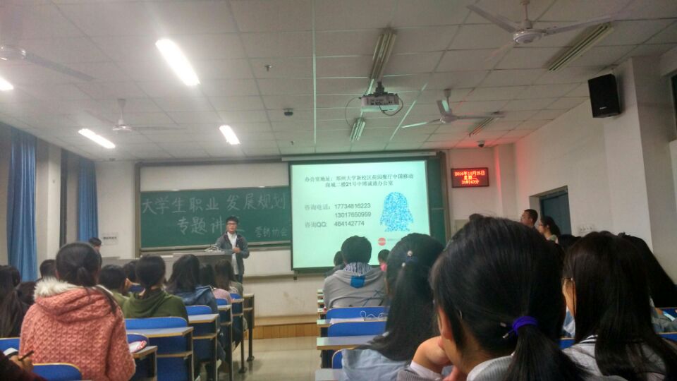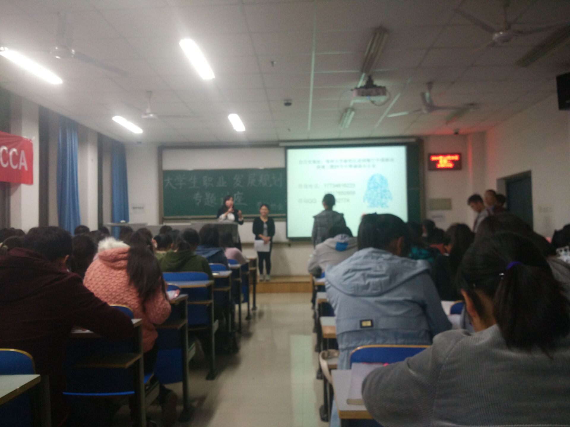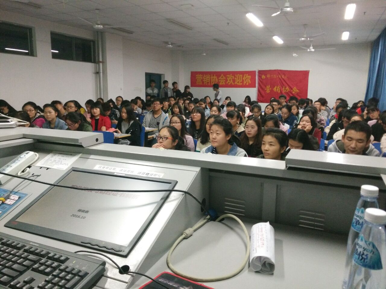 为了帮助同学们了解所学专业及其就业前景,使同学们明白职业规划的重要性,并为新生的职业规划提供指导。10月25日晚,由校团委主办、营销协会承办的大学生职业发展规划在科学校区二教楼710教室成功举行。出席本次讲座的嘉宾有:河南财经政法大学管理学硕士杨俊鑫与郑州大学陈永杰。营销协会15级干部、16级成员积极参加本次讲座。