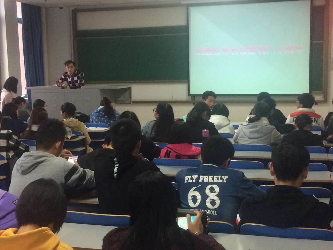 10月27日下午,由校团委主办、武术协会承办的纪念红军长征胜利80周年团学活动于科学校区二教楼708室开展。参加此次活动的嘉宾有武术协会会长林静、书记李奇伟、各部门部长以及全体16级成员。并由会长林静担任本次团学活动主持人。