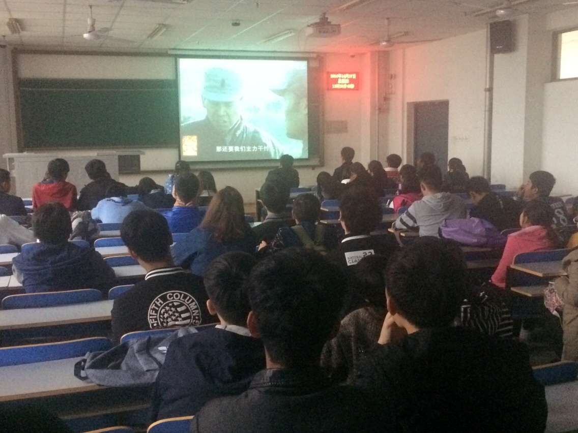 活动伊始,首先由主持人代表武术协会表达了对红军长征胜利80周年的庆贺,并结合自己的有关经历向同学们介绍长征的相关历史,还提到曾经看过的影视剧《亮剑》,希望同学们能通过影视剧等渠道了解红军长征相关历史,忆苦思甜。紧接着由16级秘书部理事姚一帆为大家讲述红军长征的小故事,《金色的鱼钩》,《飞夺泸定桥》,《巧渡金沙江》,《会宁会师》等,同学们聚精会神地听,感受着革命先烈那种无畏的精神,那种远不放弃的精神。接下来开始播放影视剧《亮剑》第14集,视频讲述了李云龙指挥部队为解放县城战斗时,为减少部队人员伤亡,不得不牺牲秀芹,向城墙上开炮。看完视频,同学们心潮起伏,思绪万千,感慨战争的无情和李云龙的无奈,深深感受到革命先烈为祖国赴汤蹈火的决心和行动,对现今和平幸福的时代更加珍惜。