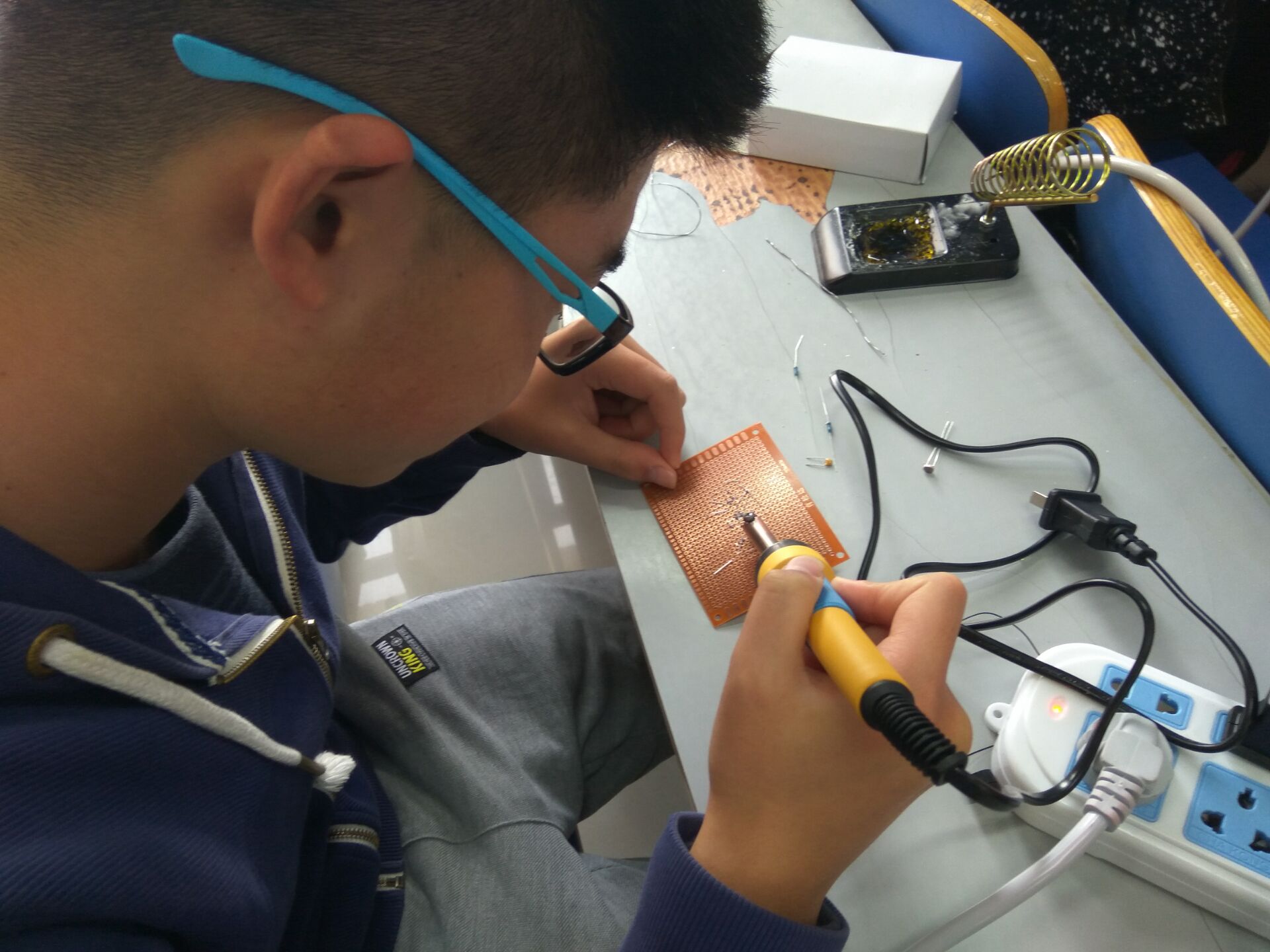 同学在认真焊接电路板
