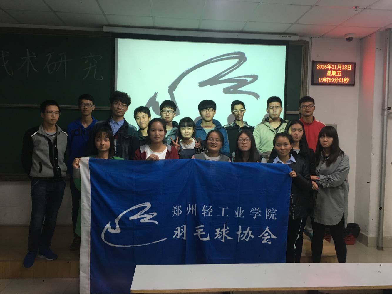 11月18日,由大学生社团联合会主办,羽毛球协会承办的社团潮活动,在郑州轻工业学院科学校区二教楼708教室顺利举行,协会全部成员均参加此次活动。本次活动旨在提高郑轻羽协社团成员对羽毛球技术的更深一层的认知,了解专业羽毛球与花式羽毛球的技巧,激发成员们对羽毛球更大的热情和兴趣。本次活动由羽毛球协会会长兰智洁和书记王翔共同主持。