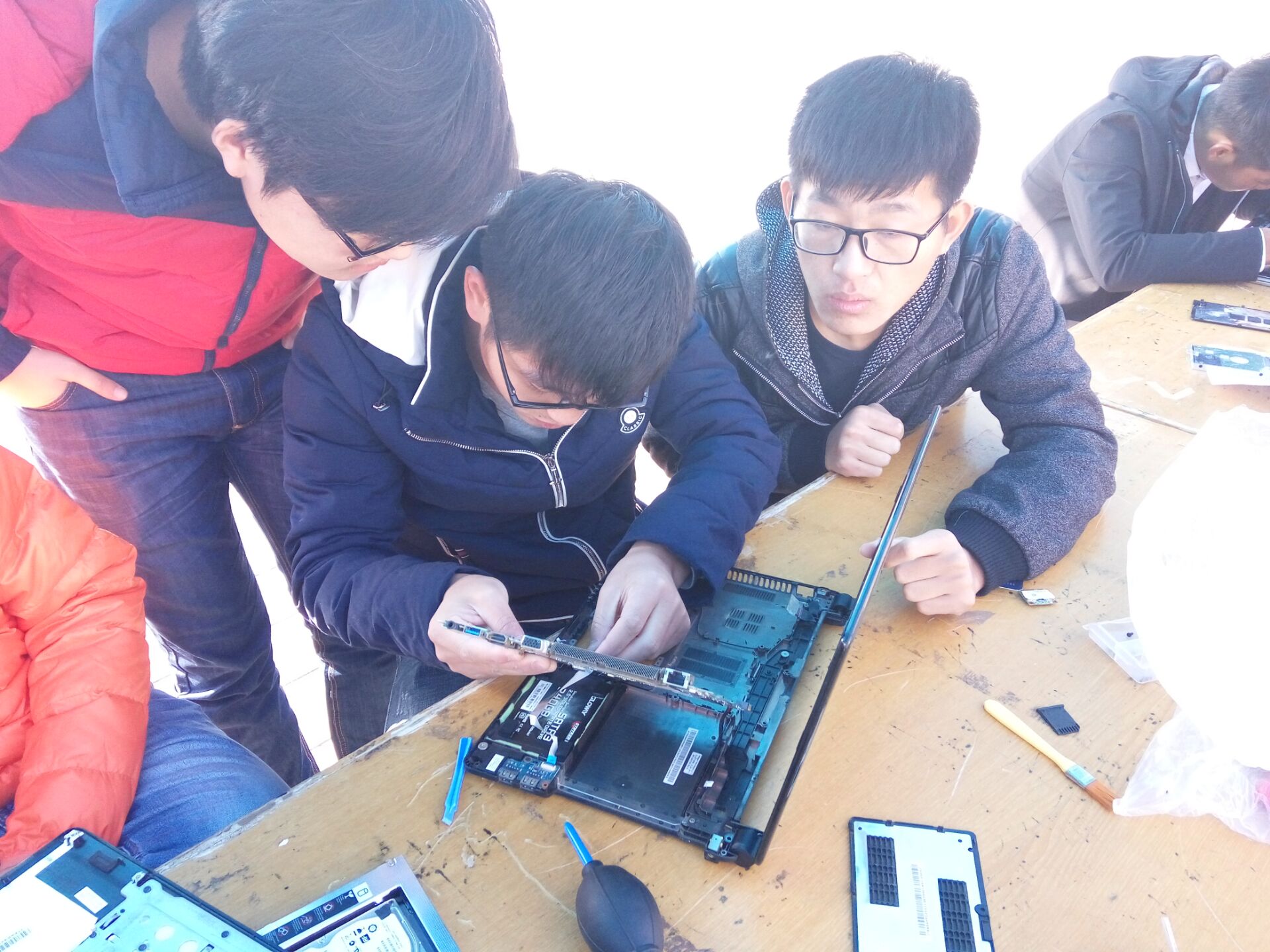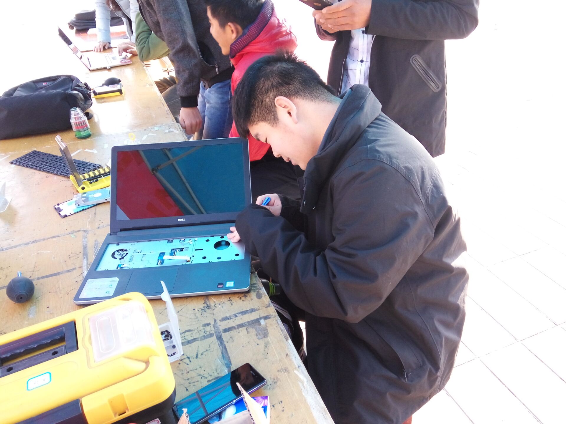 此次义务维修活动旨在电脑的清修以及其他电子产品的修理。在会长彭俊瑜、书记吴新举的正确指导下,理事们分为几组轮流值班,避免了部分理事因其他事情与值班时间相冲突的问题。维修活动刚开始时,就有同学陆陆续续送电子产品过来维修,值班人员热情地接待需要帮助的同学们,并耐心地指导他们对送来的物品及需要解决的问题进行登记,维修人员也开始认真地维修起同学们送来的各种电子产品,努力帮他们解决问题。虽然天气较冷,工作环境辛苦,但大家并无丝毫的埋怨与懈怠,依然面带笑容,热情的接待来往的同学们,维修人员也一丝不苟地修理着各种电子产品并不时向同学们普及一些基本的电子知识,整个活动现场氛围融洽,成功的帮助大量同学解决了电子产品的问题。大家都本着“奉献、友爱、互助、进步”的精神,默默地为同学们奉献着,充分的体现了电子科技协会对于公益活动的热情。
