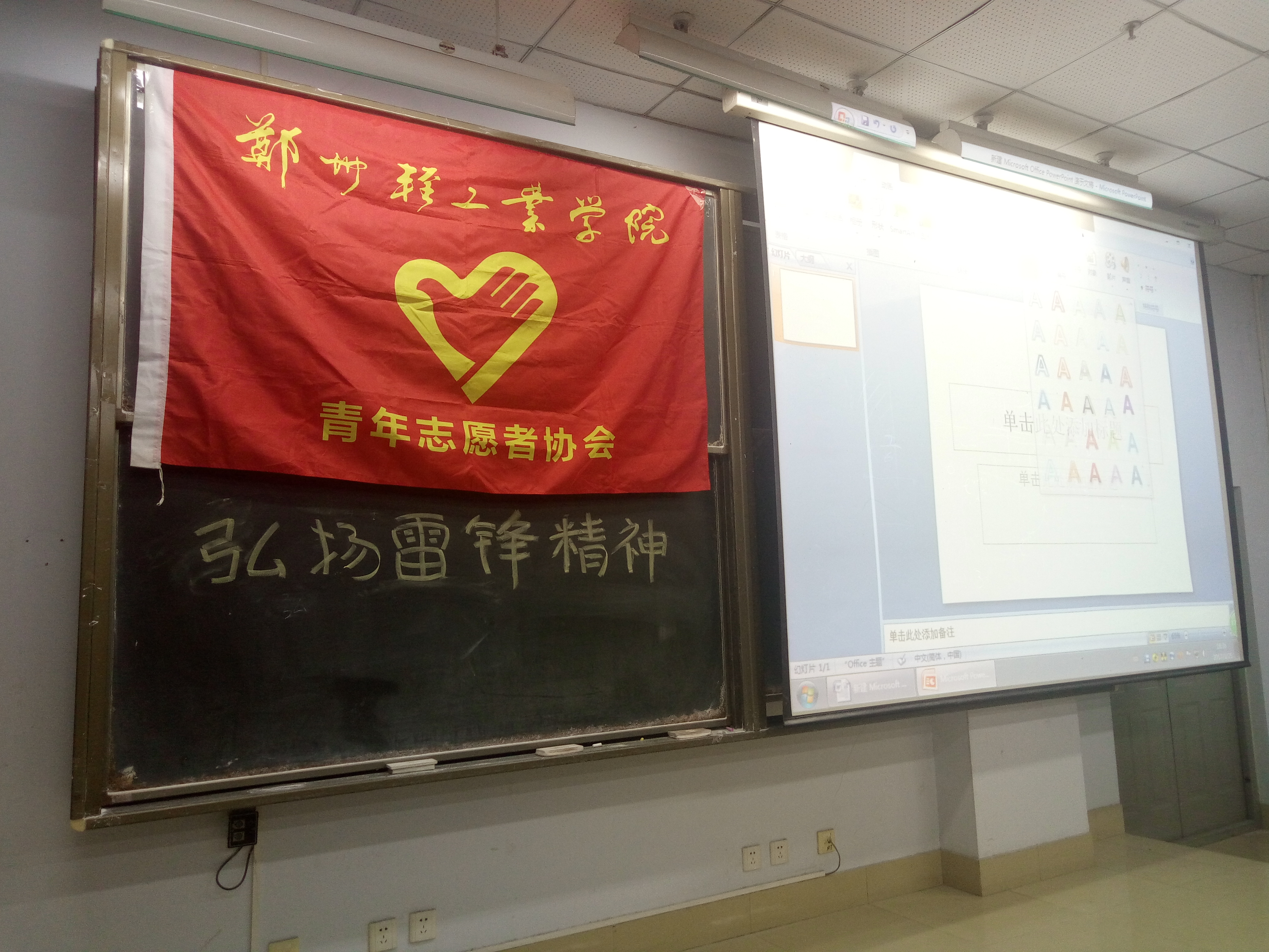 三月,是学习雷锋月。3月25日,由我校大学生社团联合会主办,青年志愿者协会承办的以“弘扬雷锋精神”为主题开展的活动在东风校区教三楼100室成功举办。青年志愿者协会大部分成员参加了此次活动。