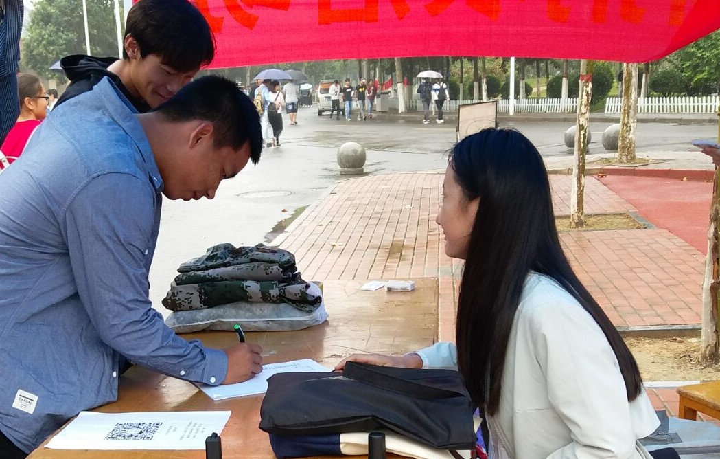 9月26日,由大学生社团联合会主办,环保协会承办的回收军训服活动在科学校区学生宿舍一号楼二号楼对面的场地举行。出席本次活动的人员有环保协会会长赵茜雯、书记张燕飞及各部门部长,协会16级理事成员和17级协会新成员。本次活动的宗旨是“旧衣重新利用,将爱心传递,为公益和环保助力”。