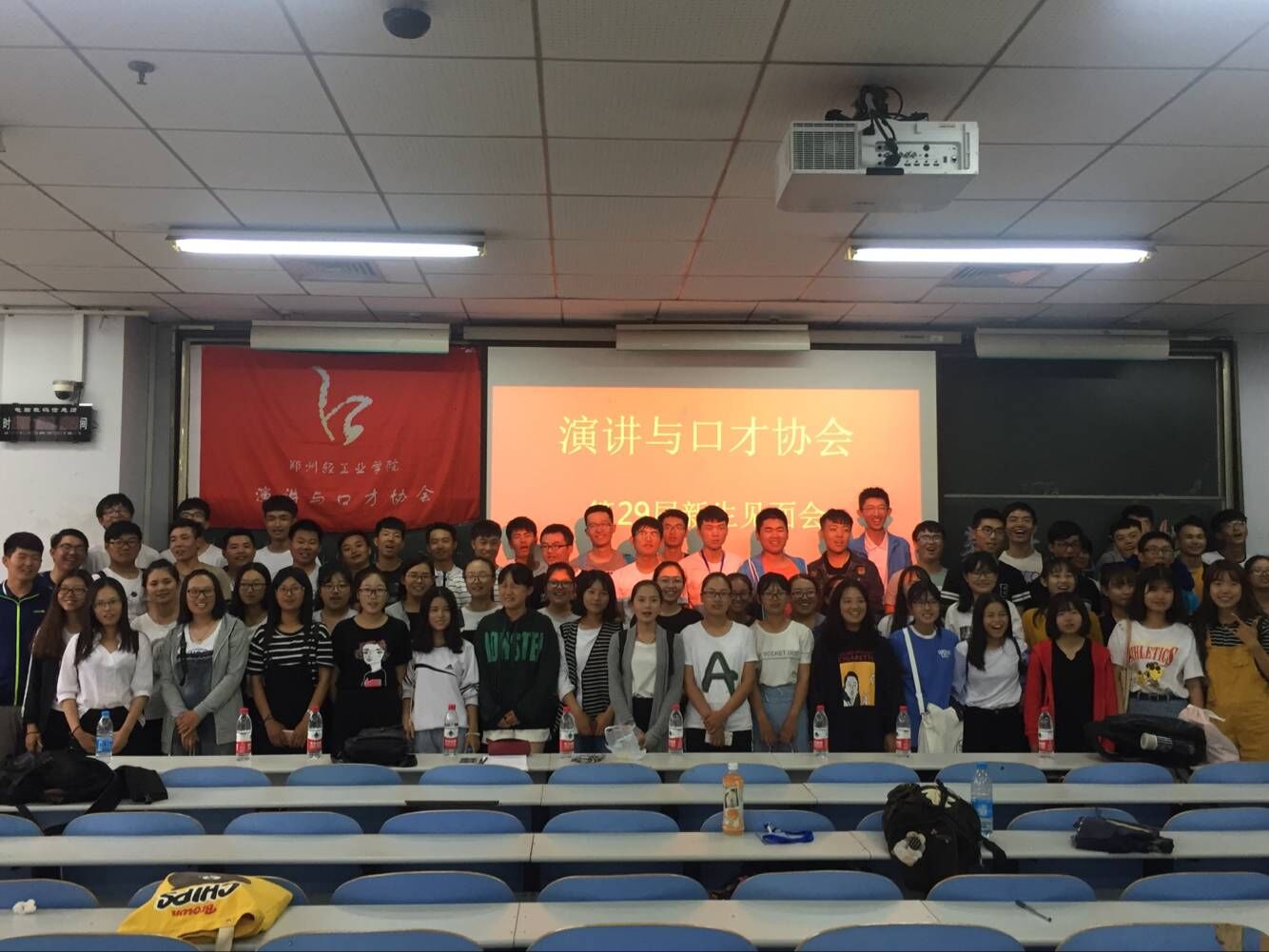 2017年9月25日,为了能够使新生能够熟悉、相识,演讲与口才协会于郑州轻工业学院东风校区教三楼104举办新生见面会,会议邀请到14级会长宋娇、14书记楚丹雅、15副会长张坤、15副书记朱雅倩、15朗诵部长余思航、15演讲部长李悦佳、15组织部长杨凌凯到会。