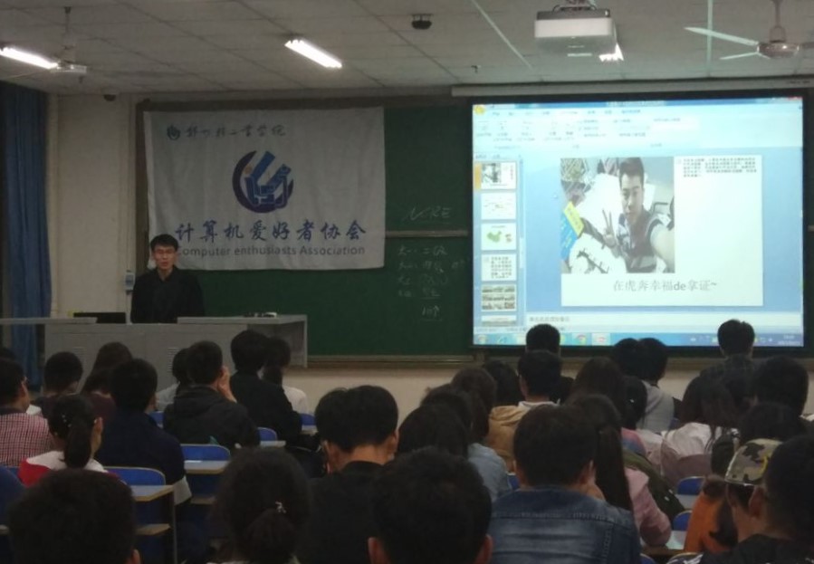 计协理事提前到场,布置活动现场。组织部成员组织人员有序入座,秘书部李亚旭负责组织签到。晚上七点,主持人张国营致开场词,并介绍到场嘉宾。紧接着,主持人宣布计算机二级考试指导会正式开始。杨鸿一老师首先指出了计算机二级在当今社会的用途与重要性:计算机办公已成为普遍现象,计算机二级证也已成为入职面试所必不可少的证书。台下的同学们坚定了报考计算机二级的想法。随后杨老师介绍了虎奔教育机构的发展历程、计算机二级培训班的基本情况,并举例成功助考同学们计算机二级考试。最后,杨老师给同学们分享了一些考试技巧和复习方式,强调要注意真题练习,多做题、多思考。杨鸿一老师的精彩讲解赢得了同学们们的热烈掌声。同学们踊跃提问,杨老师也一一解答。至此,活动接近尾声。计算机爱好者协会书记王佳诚上台致辞,表达了对杨鸿一老师和各社团,以及到场同学的感谢。