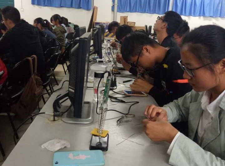 为了提高同学们对电子科技的兴趣,增强同学们的动手能力,同时也为了检验17级成员近期的学习成果,10月26日下午由大学生社团联合会主办,电子科技协会承办的无极调光灯的制作活动在科学校区四教楼201室举行。参与人员有15级副会长贾根基、16级全体干部以及17级全体成员。尹声凯担任本次活动的讲解人。