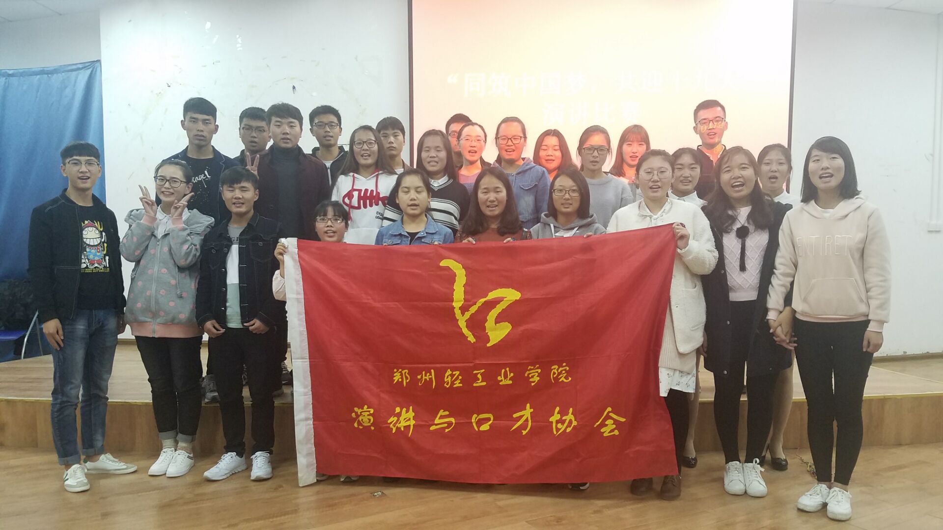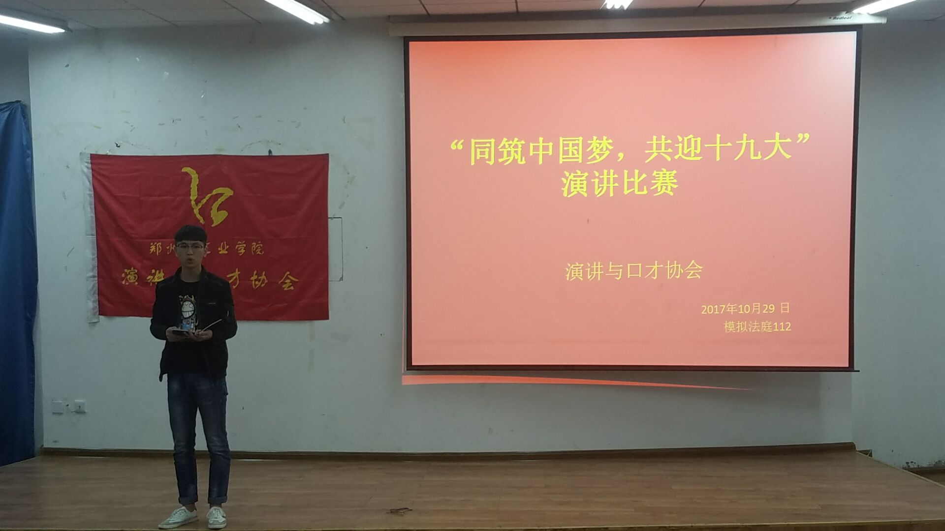 为响应十九大的召开,培养同学们的爱国精神。由大学生社团联合会举办,演讲与口才协会承办的以“同筑中国梦,共迎十九大”为主题的爱国演讲比赛于10月29日在活动中心112室成功举办。15级会长郭桠骞、副书记郭婷婷、16级演讲部副部长李坤,杜翠蓉担任评委。本次演讲比赛由17级段楠楠、蔡嘉涛担任主持人。