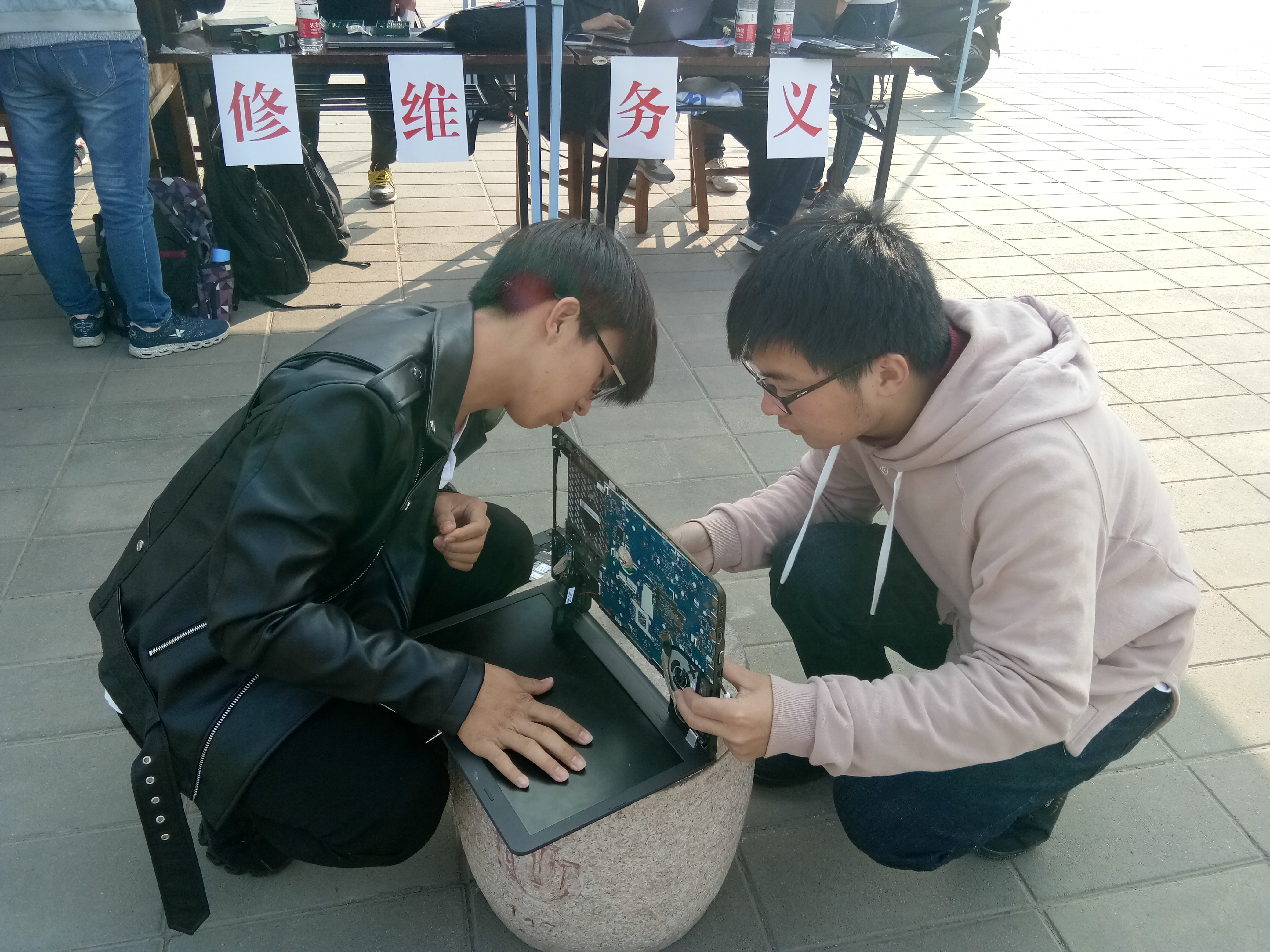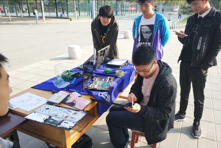 为服务轻院师生,帮助同学们解决各类电脑问题,传承协会的精品活动,11月5日,由大学生社团联合会主办,计算机爱好者协会承办的义务维修活动,在大学生活动中心与经济管理学院中间正式开展。此次活动由会长王仲恺负责,技术部部长陈林担任维修总负责人。