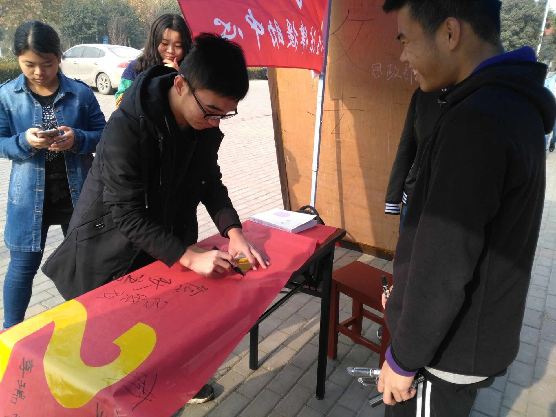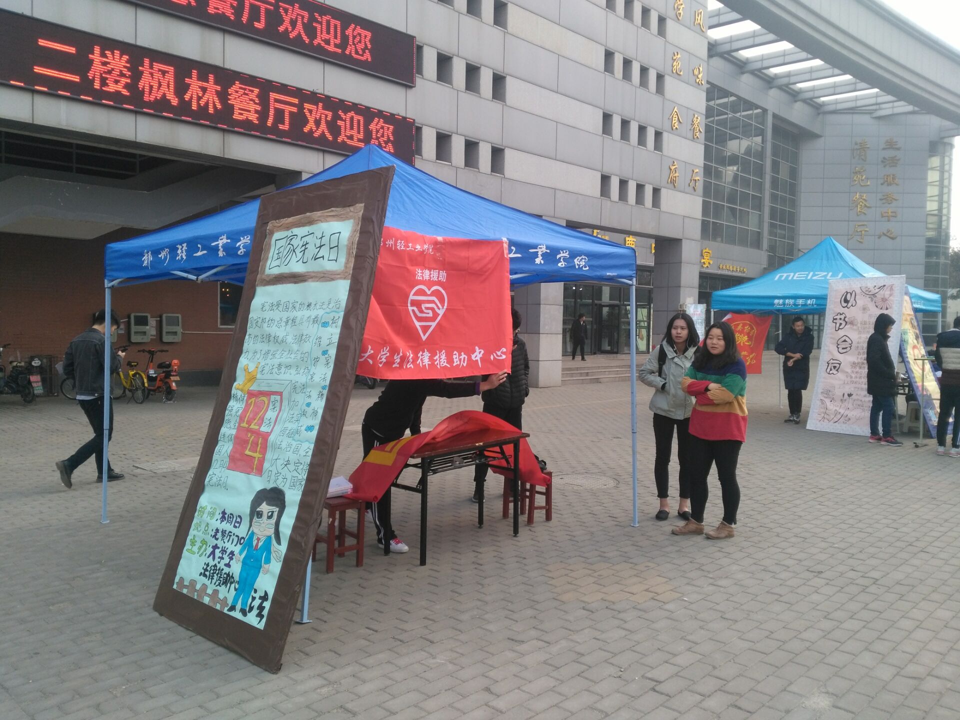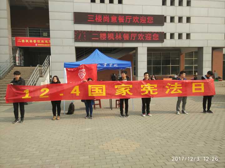 为了增强同学们的法制观念,普及与宪法相关的知识,宣传宪法精神,促进校园法制文化建设,大学生法律援助中心举办的国家宪法日签名暨法律宣传活动于12月3日在科学校区举行,政法学院部分专业老师、政法学院学生会同学、学生法律援助中心的同学们参与了此次活动。