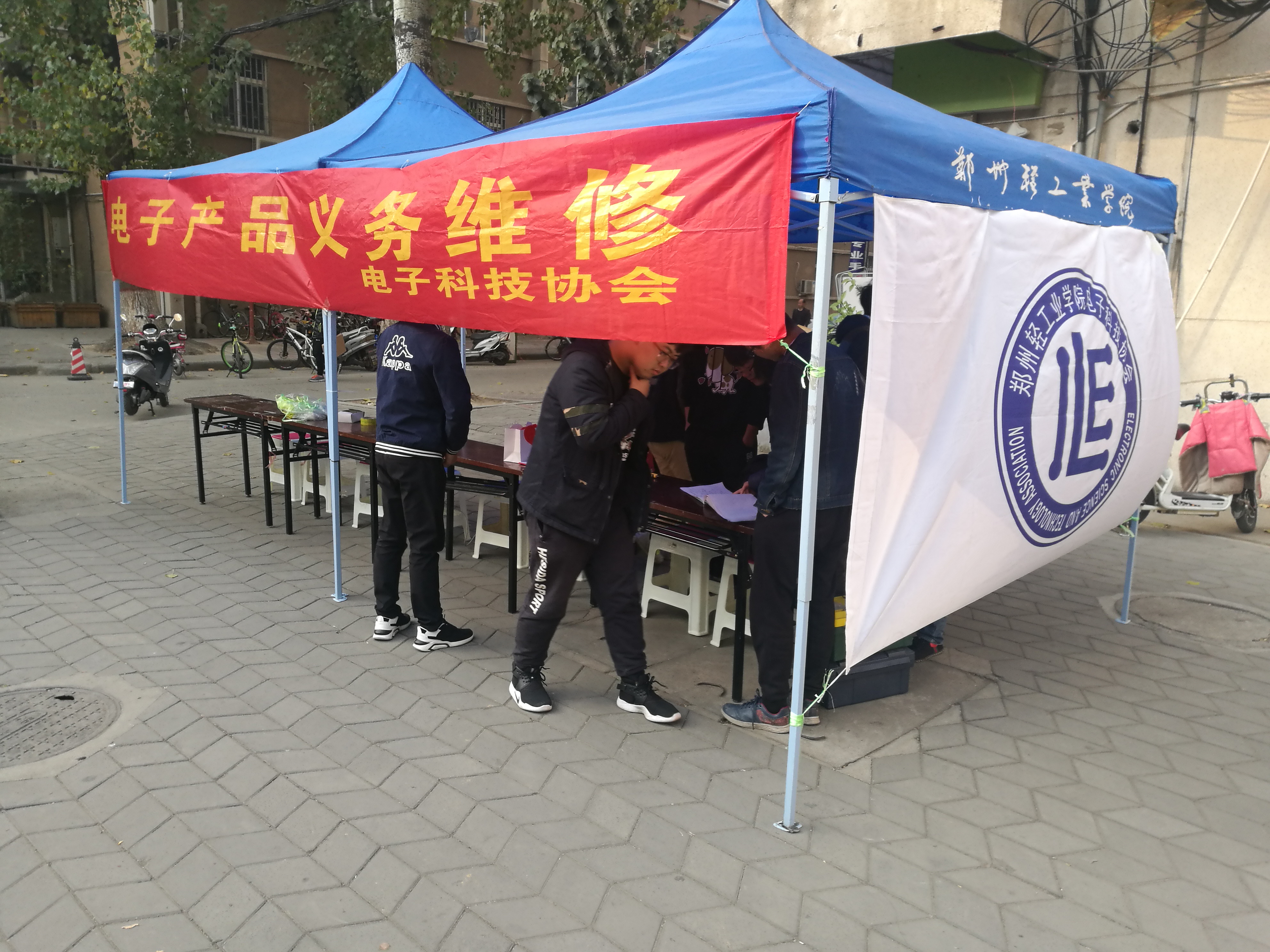 一年好景君须记,最是橙黄橘绿时,11月26日电子科技协会于第一生活园区餐厅对面开展本学期第一次校园家电义务维修活动,电子科技协会全体成员近100人参与此次活动。维修的范围有:电脑、电灯、录音机、音响、MP3等电器。