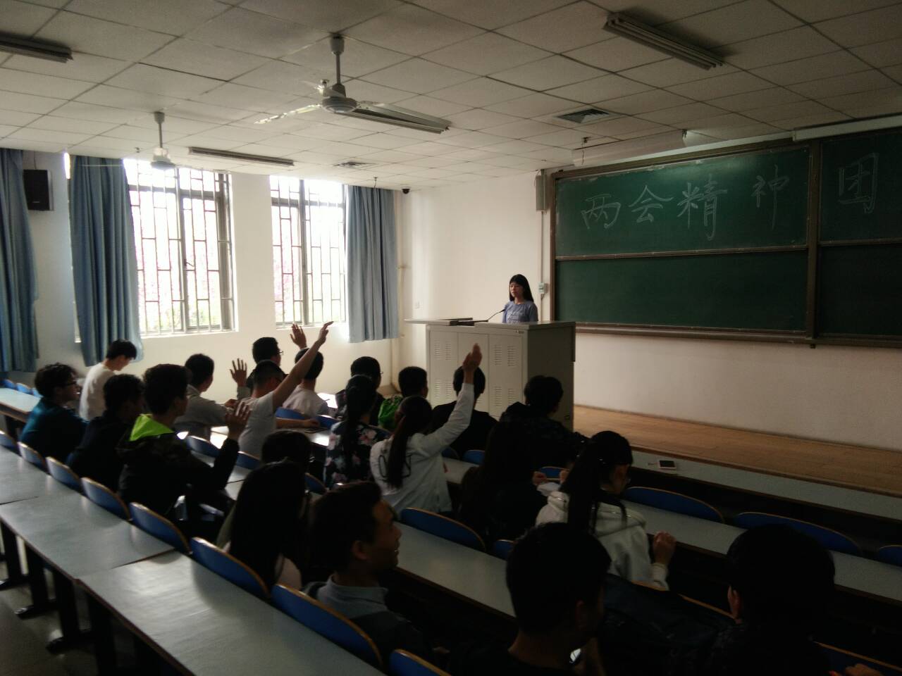 两会已经顺利闭幕,为了促进协会成员对两会知识的了解,深入贯彻两会精神,增强协会成员们的爱国热情。3月29日中午,英语沙龙协会与书法协会、棋类协会、健身健美协会、花艺协会在第三教学楼106室共同举办了关于两会精神的团日活动。出席本次活动的有各协会的16级理事,17级理事和会员等。同学们积极参加讨论,勇敢发言。
