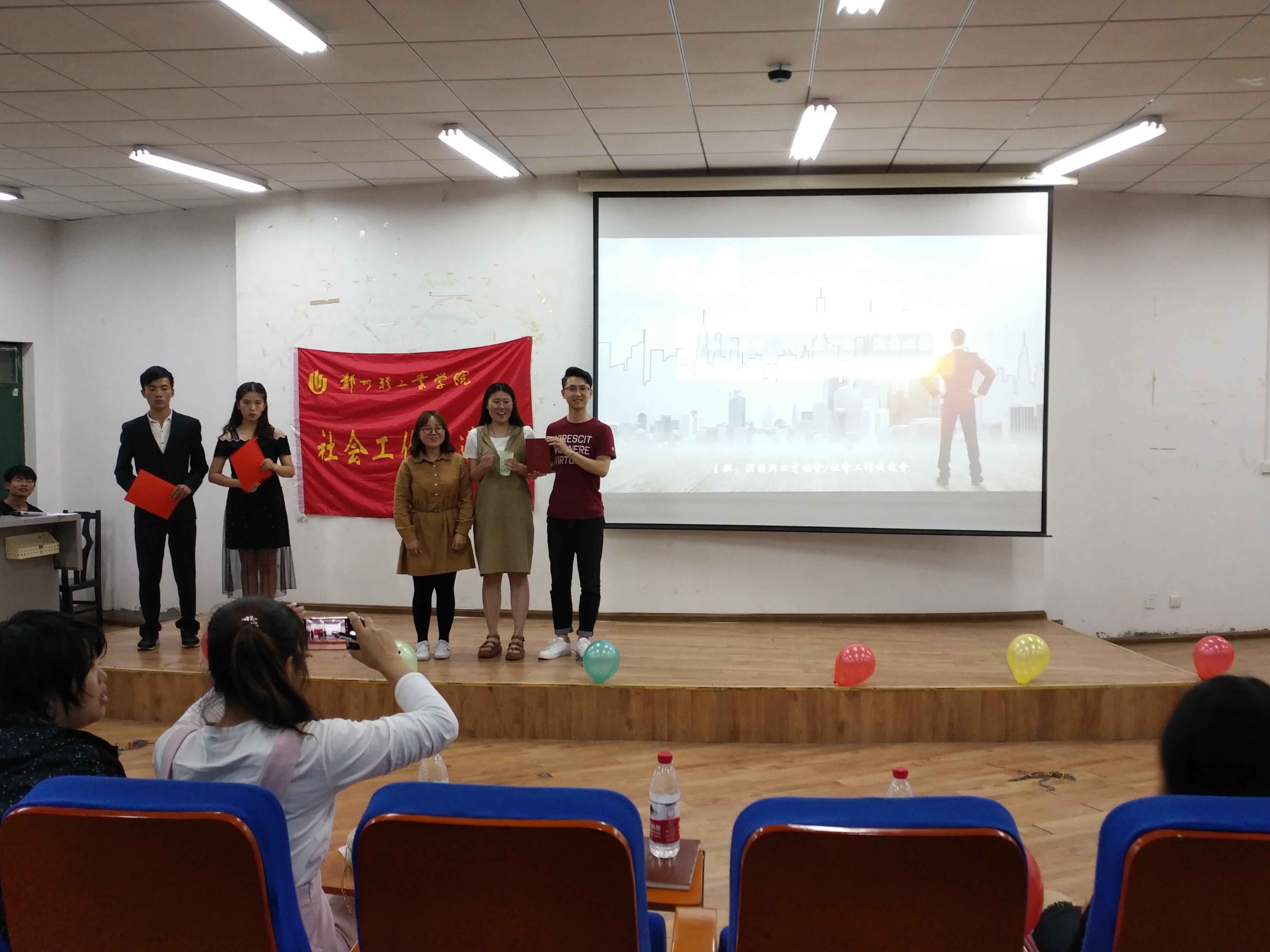 活动分为三个环节,第一个环节首先由主持人介绍并欢迎到场评委以及嘉宾,随后介绍本次活动的主题并宣布活动规则,激动人心的演讲比赛正式开始,选手们纷纷上台展开了各自的演说,评委们也都竖耳聆听,前五名选手演讲完毕,主持人宣布了他们的各自得分,之后比赛继续,在接下来的比赛中,选手们将自己的演讲演绎出了自己的特色,虽然在过程中有紧张的有忘词的,但最后都坚持到了最后并将自己所想表达的都通过这次演讲表达了出来,评委和观众们都听得非常认真。活动第二个环节,参赛选手都演讲完毕后,由演协的评委李坤来对本次比赛作出点评,评委进行了很详细的点评,对每位选手在演讲中的优缺点进行了详细的评说,点评完后,由主持人宣布最后的评分并宣布获奖选手。接下来第三个环节就是让人期待的颁奖环节,主持人让获奖选手上台领奖,由评委分别对三等奖、二等奖、一等奖依次颁奖。颁奖完毕,主持人致闭幕词。活动结束后,社会工作促进会、演讲与口才协会与PCD协会以及所有参赛人员进行合影留念。