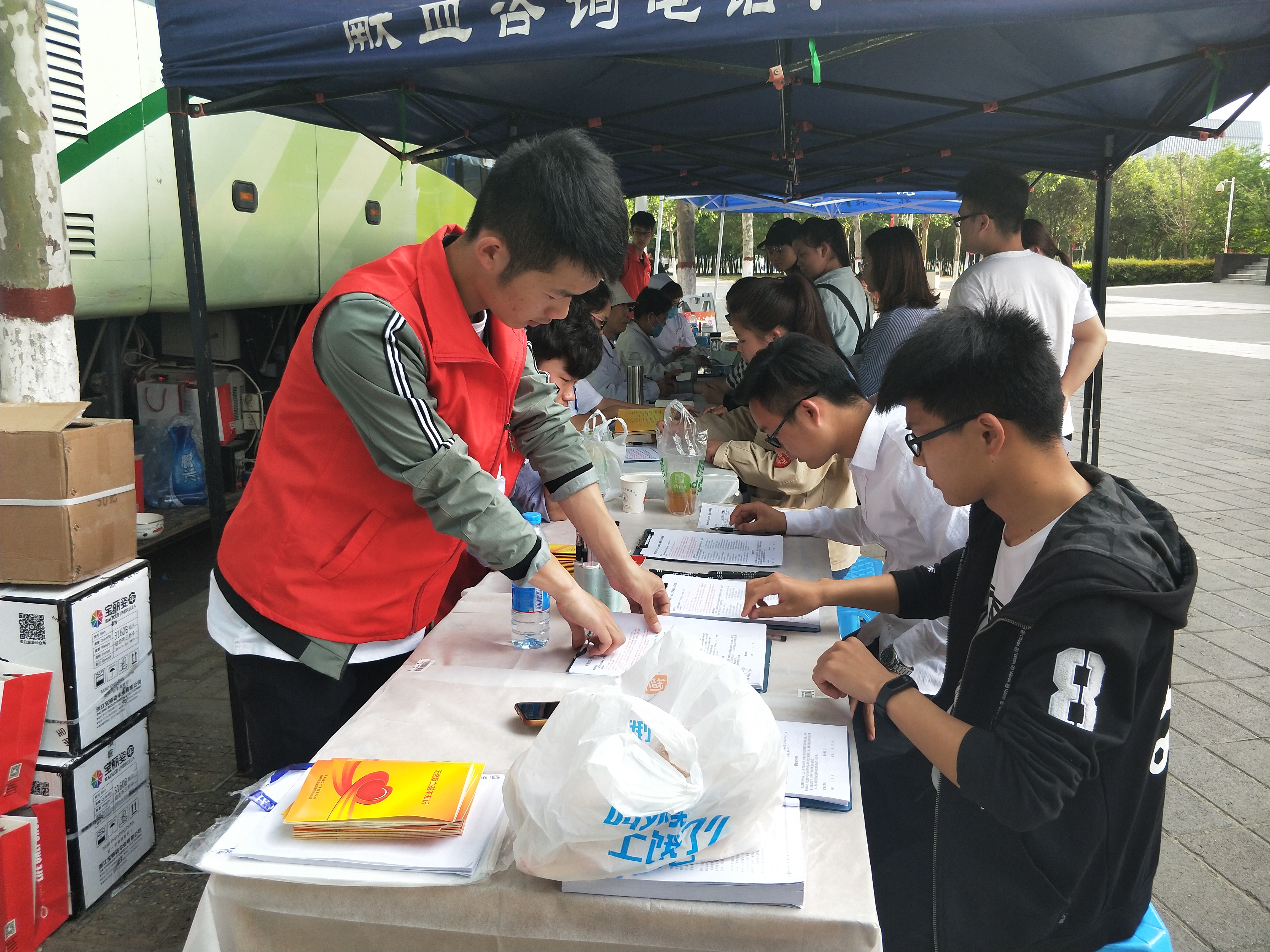 为传递爱心,提高我校学生的社会责任感,弘扬社会正能量,更重要的是挽救宝贵的生命,在校团委的领导下,由青年志愿者协会主办的以“献点滴血,绿生命树”为主题的无偿献血活动于4月26日10:00--18:00在科学校区清苑餐厅前和三教楼前举行。参加本次无偿献血爱心活动的有科学校区的学生及周边居民,大家积极地参与到本次活动中来,奉献出属于自己的一份爱心。
