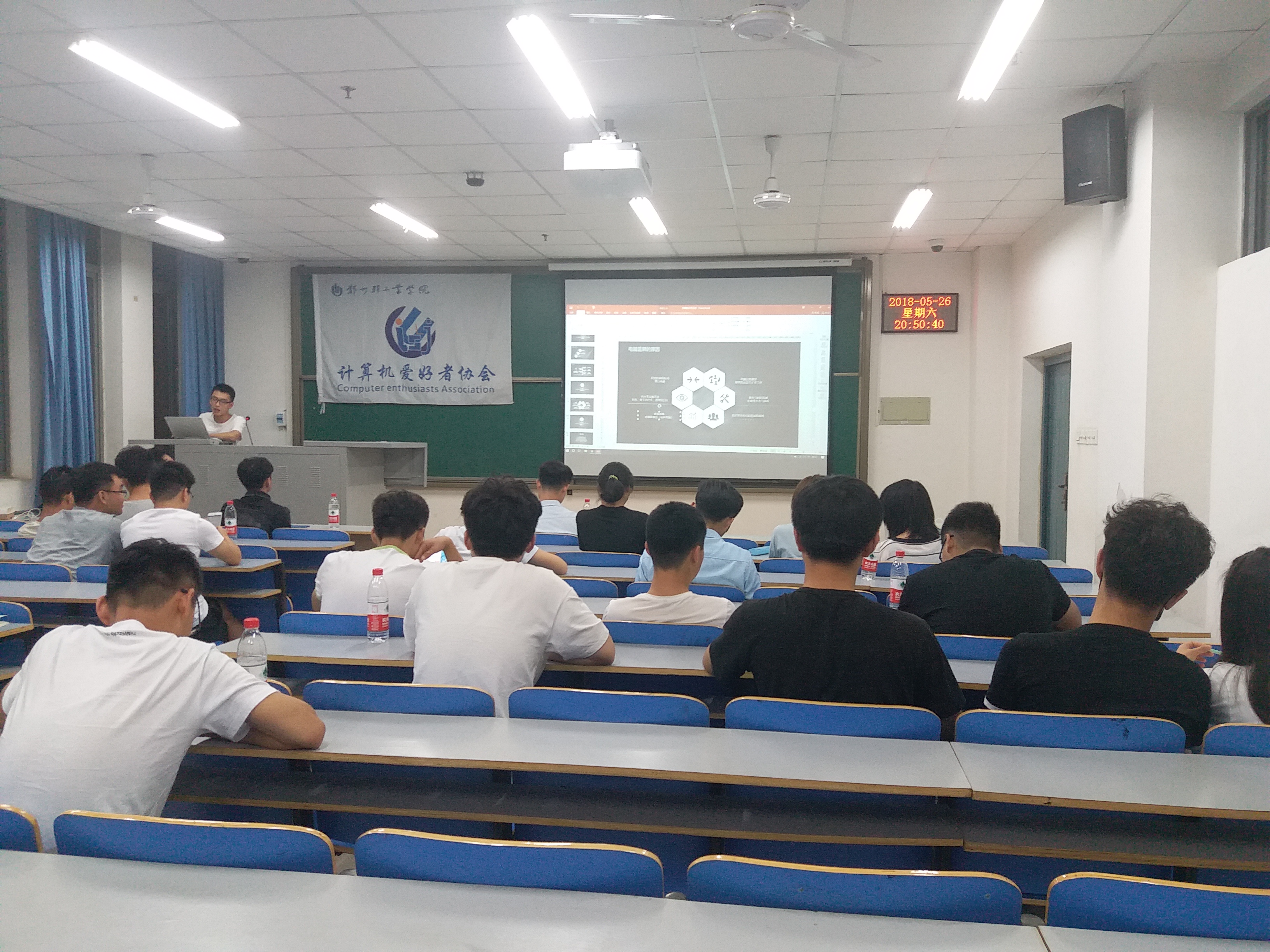 为了让同学们能够更好地掌握电脑的使用技巧,提高同学们的电脑使用效率,展示协会的特色风采。5月26日,由大学生社团联合会主办、计算机爱好者协会承办的计算机知识交流会,在二教楼710室顺利举办。此次活动由计算机爱好者协会书记王佳诚及技术部理事孔文龙共同主持。