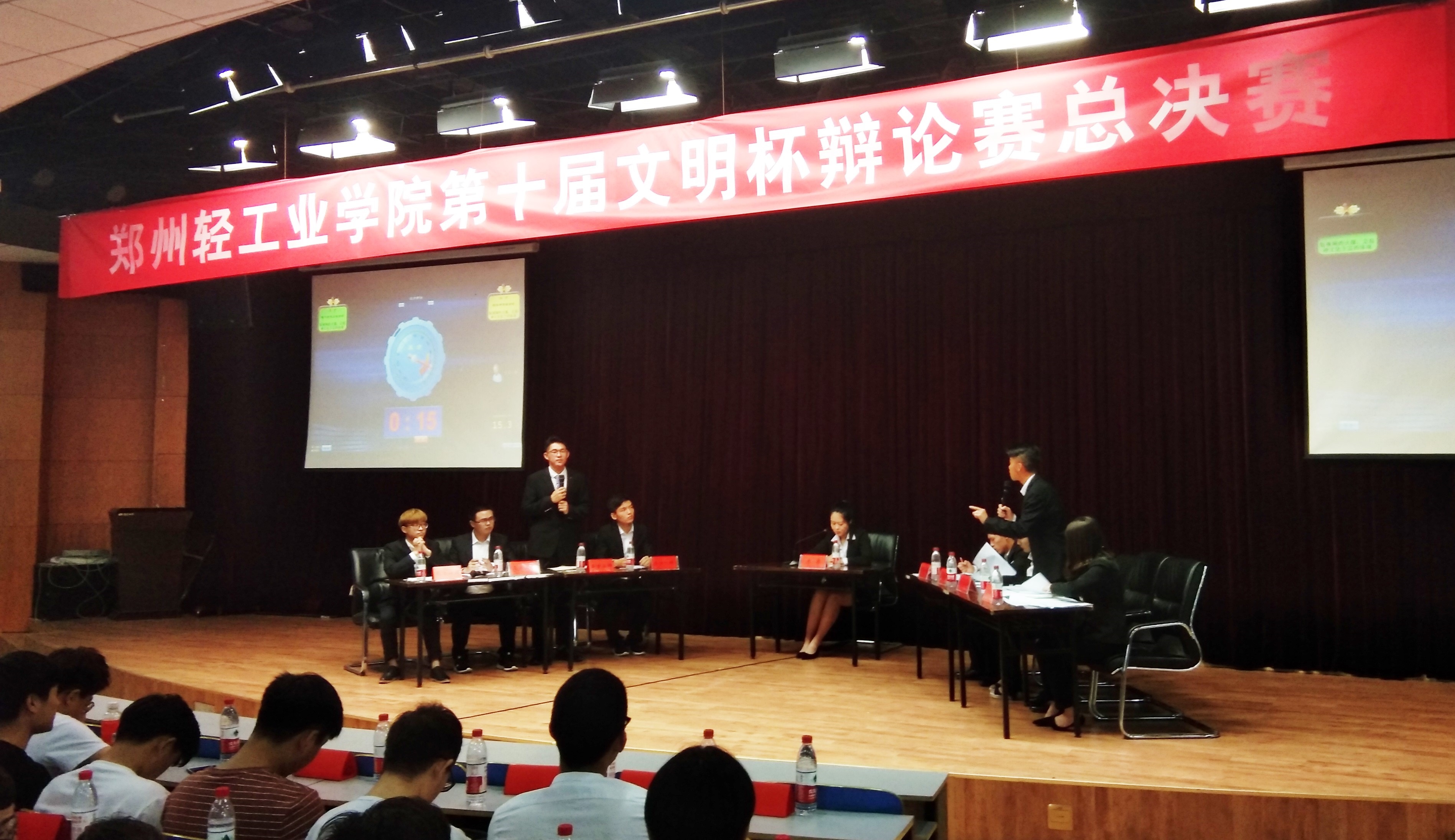 6月2日下午,郑州轻工业学院第十届“文明杯”辩论赛总决赛在科学校区大学生活动中心208室隆重开赛。本次活动由共青团郑州轻工业学院委员会主办、科学校区校学生会及演讲与口才协会承办。正方电气信息工程学院代表队所持观点为短视频的火爆是精神文化丰富的体现,反方经济与管理学院代表队则持相反观点。校团委办公室主任王银峰老师出席了此次辩论赛。科学校区演讲与口才协会会长郭桠骞、辩论部部长洪德立、东风校区演讲与口才协会会长陈星铎、辩论部部长王静及科学校区学生会主席段子文担任比赛评委;16级范竞之担任本次比赛主席。
