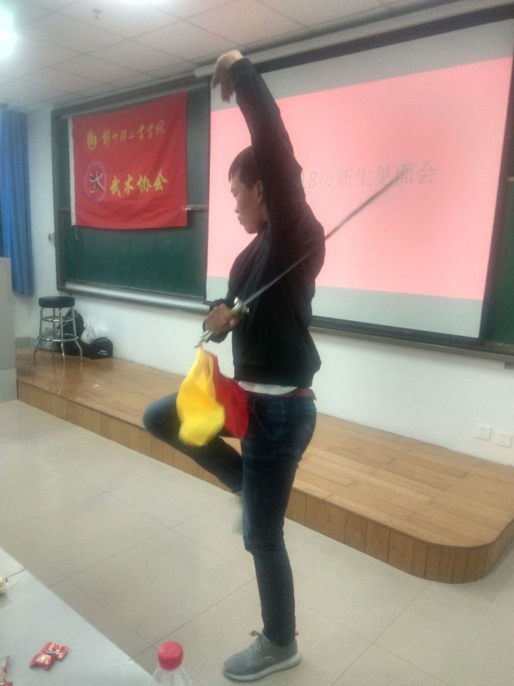 首先,由主持人连英存介绍各位参会来宾并欢迎2018级新生加入武术协会。随后她宣布由武术协会副会长张汉杰发言,让到场的新生们印象深刻。接着由现任会长刘永鹏上台致辞,再次表达了对到场同学们的欢迎和感谢,并对18级新生寄予厚望,希望能够在武术协会大家庭一起学习。接下来是游戏环节,大声朗读绕口令,打破了传统,从会场后面的新生开始,使现场气氛十分活跃。接下来武术协会现任书记杨粤薇致辞,从“整体”、“脾气”、“坚持”、“思想”四个词语表达对武术协会的祝福与期望,接着由科学校区武术协会17级副会长赵晨聪致辞,对武术协会的训练项目做了介绍,并在最后希望同学们能坚持训练,坚持是成为高手的重要条件。然后是新生才艺表演环节,此次环节调动了在场人员的积极性,现场气氛达到了高潮。游戏结束后,由武术协会副书记连英存通过播放视频、PPT等方式,介绍了武术协会的文化、历程、目标、活动照片集锦,充分展示了武术协会的生命与活力。接下来是教练团的表演,依次表演了吉他弹唱与传统套路表演,引来一阵阵赞赏,整个会场再次迎来高潮。在16.17级成员发言完毕后,由18级新生代表秦鹏飞进行发言并表达了对武术协会的祝愿,到了微信互动环节,整个会场再次沸腾。见面会进行到最后,由副会长仝张宇带领全体成员进行宣誓环节。宣誓完毕,由会长刘永鹏就本次见面会进行总结发言,并宣布此次见面会圆满成功,会场一片沸腾,充满激情与活力。大会结束后,与会人员进行了合影留念,在这张武术协会的“全家福”中,深深蕴含着协会成员对武术协会深厚的感情。