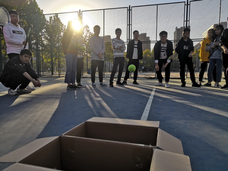 本次活动于下午三点正式开始,活动开始之前,书记助理高怡婕带领参加活动的全体同学做了热身运动。随后会长助理林卓耀为大家讲解活动流程、游戏规则以及一些注意事项,为活动的正常进行作了良好的铺垫。随后,活动正式开始。首先,会长助理林卓耀进行了对网球挥拍、发球等基本动作的讲解并带领大家练习。同学们通过练习后,对网球的基本动作有了更好地了解,也更加地熟练。其次,活动进入到游戏环节。首个游戏名叫“单脚颠球”,顾名思义,即必须单脚并且用球拍颠着球绕球场一周,用时最少者获得胜利。游戏看似简单,实则并不容易,同学们玩得不亦乐乎。随着游戏项目的不断改变,大家的参与度不断提高,热情越来越高涨,活动现场的氛围也达到了巅峰,并且一直持续到活动结束。最后,全体成员合影留念,至此本次活动圆满结束。活动虽然结束了,但同学们仍意犹未尽,仍留在活动场地练习动作。由此可见,同学们对于网球的极度热爱以及愿意为学习网球而付出努力的坚定决心。