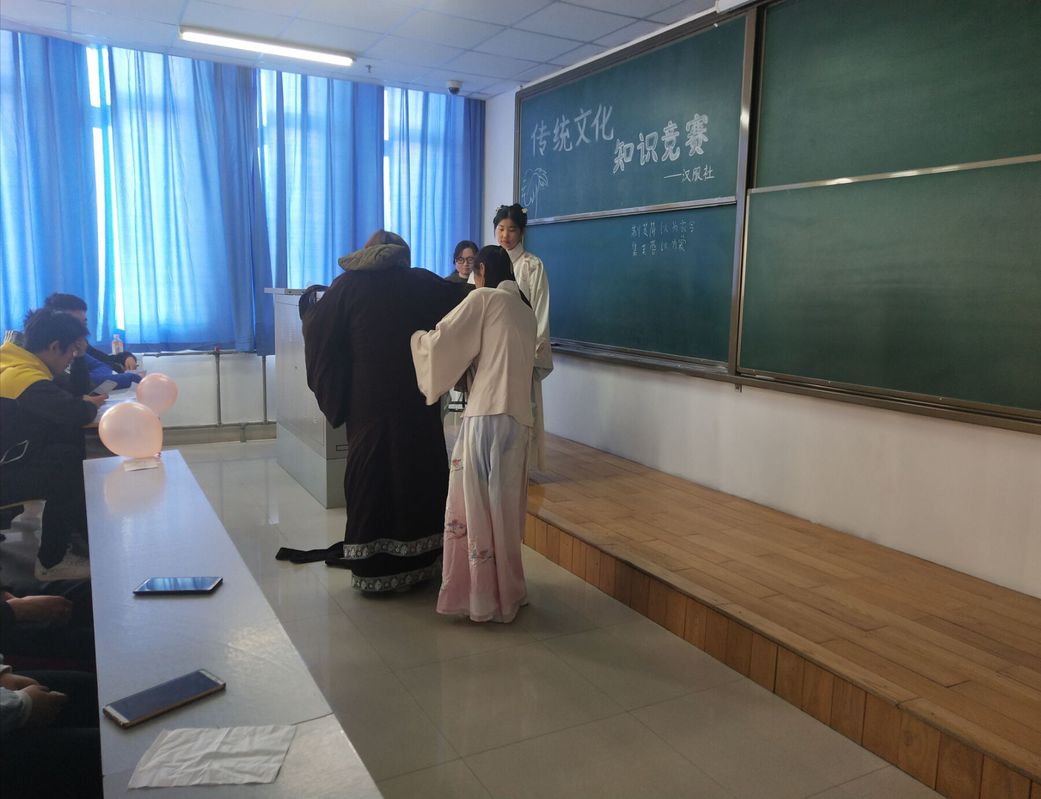 为使更多的人了解中华优秀传统文化并激发大家的兴趣和民族自豪感,同时让有文化功底、腹有诗书的同学发挥自己的才能,11月18日下午,山水蒙汉服社在二教710举办了传统文化知识竞赛,青年志愿者协协,武术协会,书法协会,调研协会,以及汉服社成员出席活动,各大社团的参赛同学,其中社团各级成员也积极观看本次活动。张梦圆担任主持人。