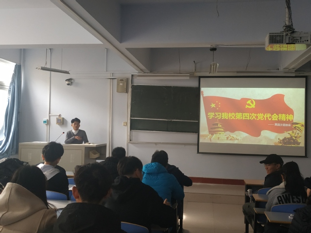11月29日,英语沙龙协会在西五楼301举行“学习我校第四次党代会精神”主题团日活动。本次活动由焦梦主持总结思想,英语沙龙协会各部门副部以及成员共125人参加。