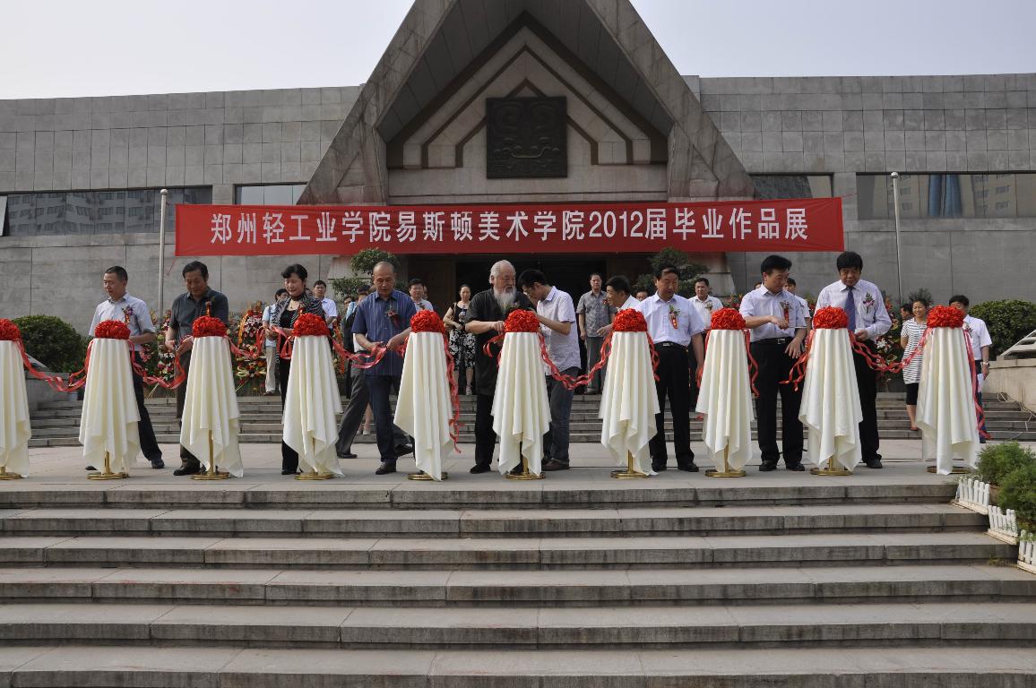 2012年6月7日下午16:00时,郑州轻工业学院易斯顿美术学院2012届毕业设计作品展在河南博物院隆重开幕。河南省政协、河南省教育厅、河南省侨联、河南省美术家协会、河南省包装技术协会、兄弟院校领导及广大师生等一千余人参加了开幕式。郑州轻工业学院党委书记、校长剧乂文教授出席开幕式并为开幕式剪彩,郑州轻工业学院副校长赵继红教授在开幕仪式上致辞。