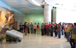 2013年4月25日,郑州轻工学院国培基地组织2012中职骨干教师国家级培训班学员进行了“品读黄河文化,见证母亲河变迁——黄河专题考察”,让来自全国各地的学员们走近和了解哺育了中华儿女、孕育了华夏文明、培育了民族精神的母亲河——黄河。上午,大家在国培基地办公室李涵、张霞、孙琳三位老师的带领下,来到位于郑州市北郊花园路、迎宾路交叉口的黄河博物馆参观。黄河博物馆成立于1955年4月,2012年因城区道路拓建搬迁到新址重新开放,它是我国唯一一座以黄河为专题的自然科技类博物馆。大家参观了以“华夏国脉——黄河巨龙的缩影”为主题的陈列,通过现代化的图片模型、实物、光影,全面了解了黄河的自然概况、沧桑变迁、黄河文化、历代治河、新石器治河理念与实践等内容,感受了黄河优秀历史文化,见证了人民治黄的伟大成就。