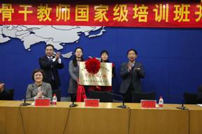 3月19日上午,郑州轻工业学院中职骨干教师国家级培训班开班典礼在图书馆报告厅隆重举行。省教育厅副厅长尹洪斌,校党委书记、校长剧乂文,副校长赵继红,省教育厅职业教育与成人教育处副处长王明忠出席开班典礼。机电工程学院、经济与管理学院、继续教育学院、科工贸公司、后勤集团负责同志及相关人员,培训班授课教师代表和来自全国各地中等职业学校的全体培训班学员参加活动。开班典礼由副校长赵继红主持。仪式上,省教育厅副厅长尹洪斌和党委书记、校长剧乂文共同为我校全国重点建设职教师资培训基地揭牌。
