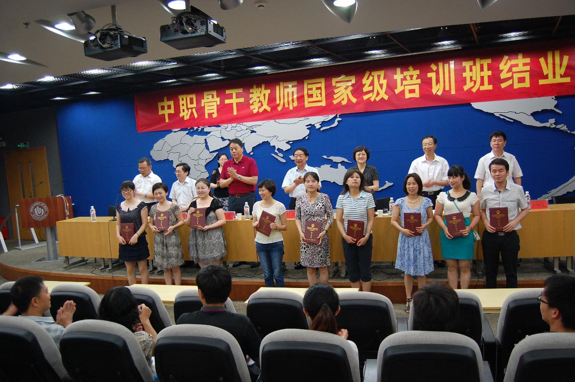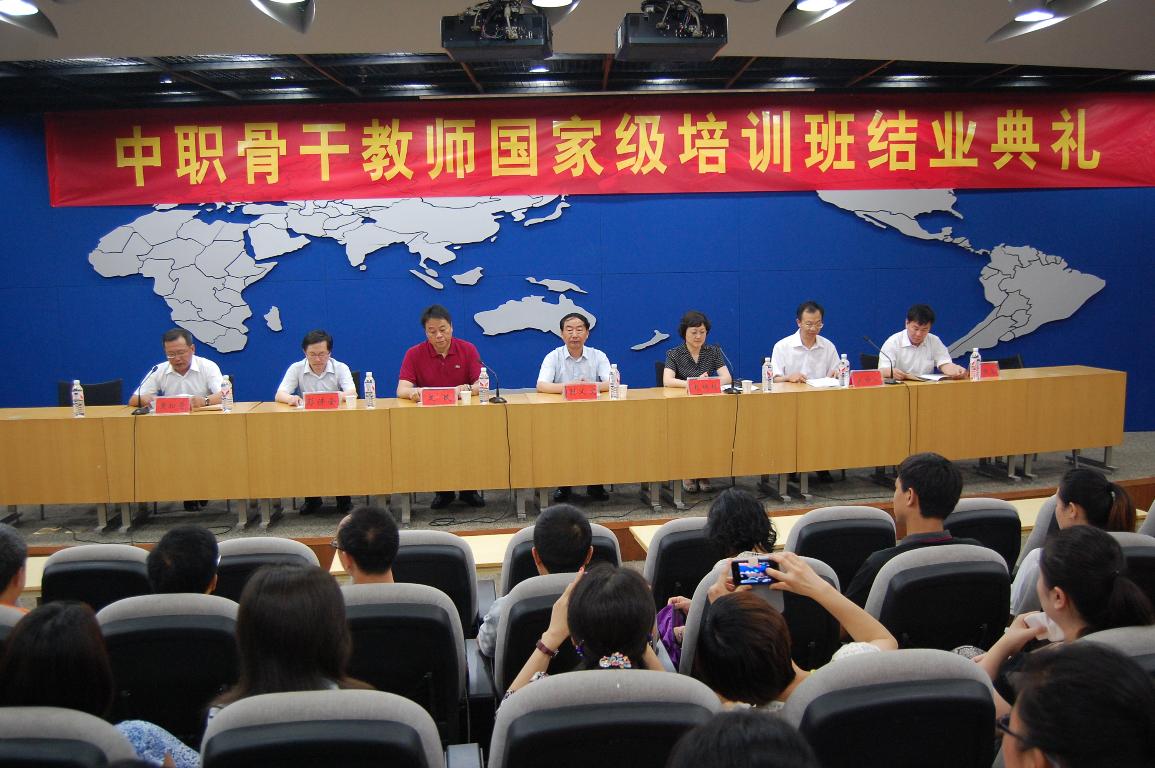 2013年6月5日,由我校全国重点建设职业教育师资培训基地(以下简称国培基地)承担的教育部、财政部2012年度会计电算化专业、制冷和空调设备运行与维修专业中职骨干教师国家级培训班,在图书馆学术报告厅隆重举行结业典礼。党委书记、校长、学校国培基地领导小组组长剧乂文教授出席典礼并为优秀学员颁奖。副校长、学校国培基地领导小组常务副组长兼国培基地主任赵继红教授出席典礼并讲话。继续教育学院、经济管理学院、机电工程学院、科工贸公司、后勤集团等部门负责同志,授课教师代表、相关工作人员和全体国培学员参加典礼。结业典礼由继续教育学院副院长黄松奇主持。